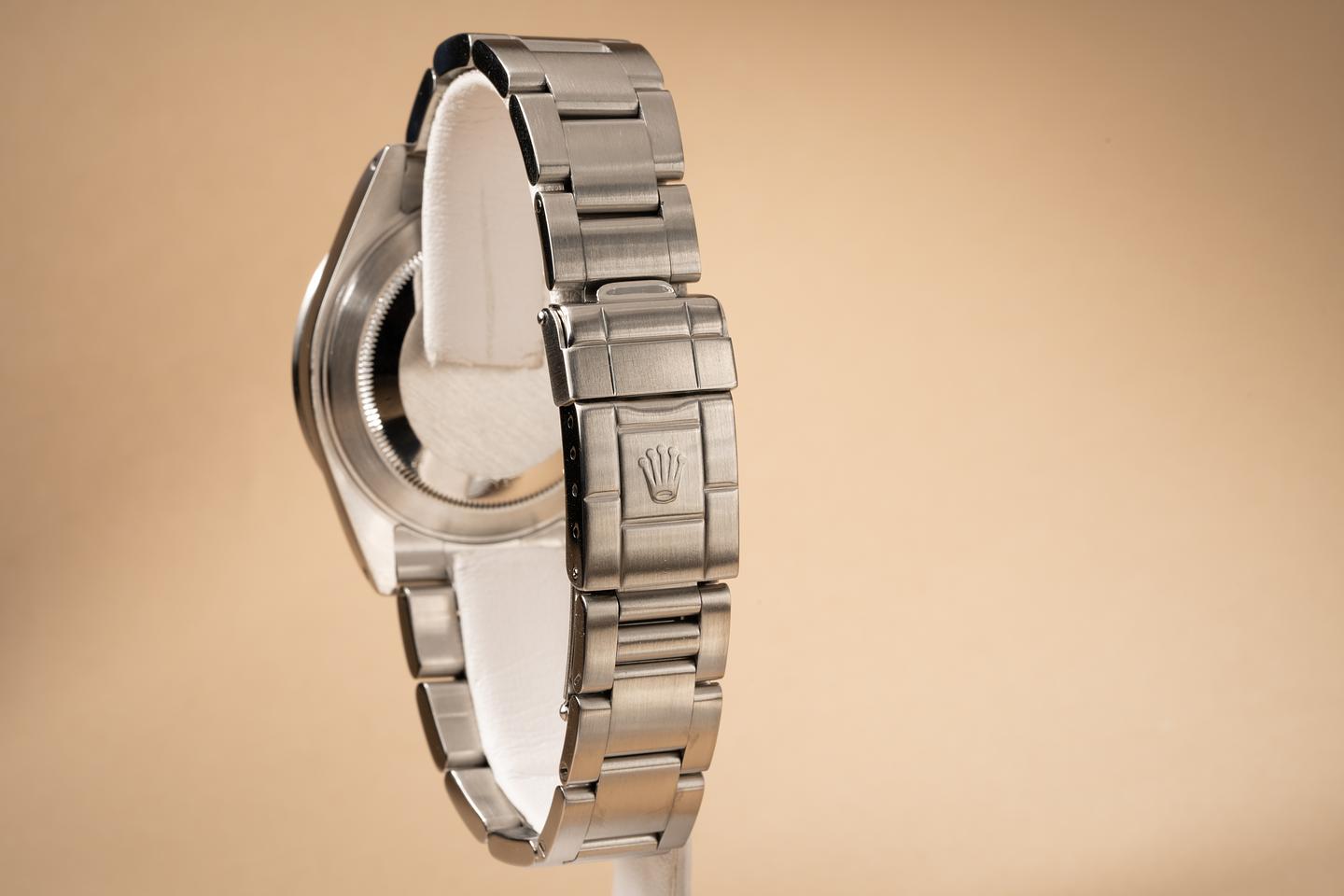 Bracelet: Excellent 12 link oyster bracelet showing only very light stretch. The clasp is stamped with a matching 2000 date code.