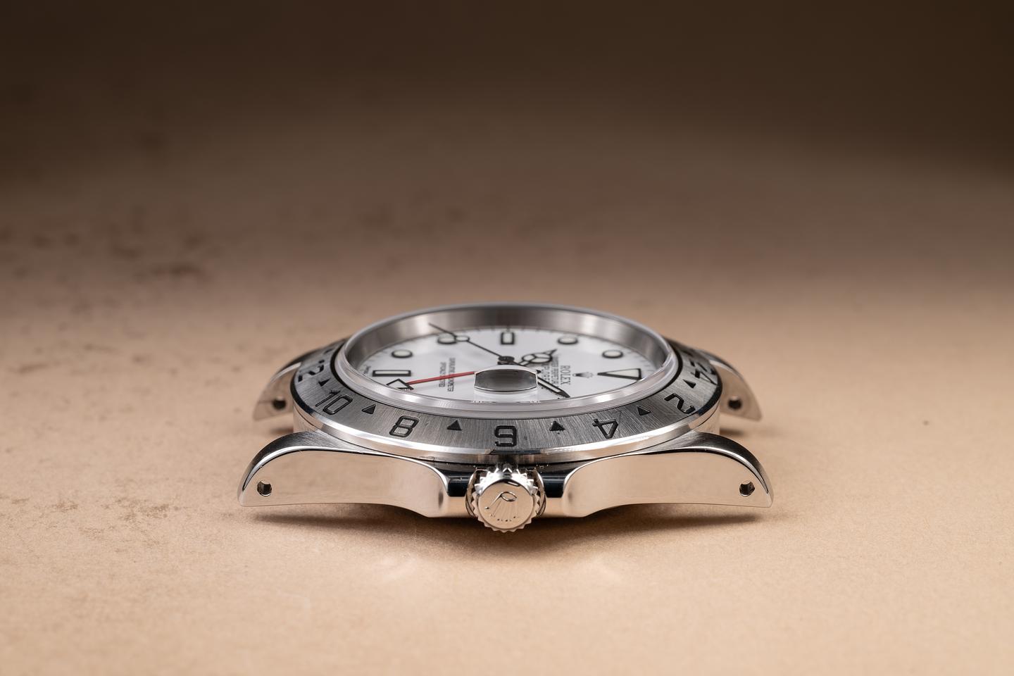 Case: The previously polished case is excellent, showing only light wear from use. There is one small scuff present on the top of the 5 o'clock lug. The bezel is also in excellent condition, showing only light wear from use.