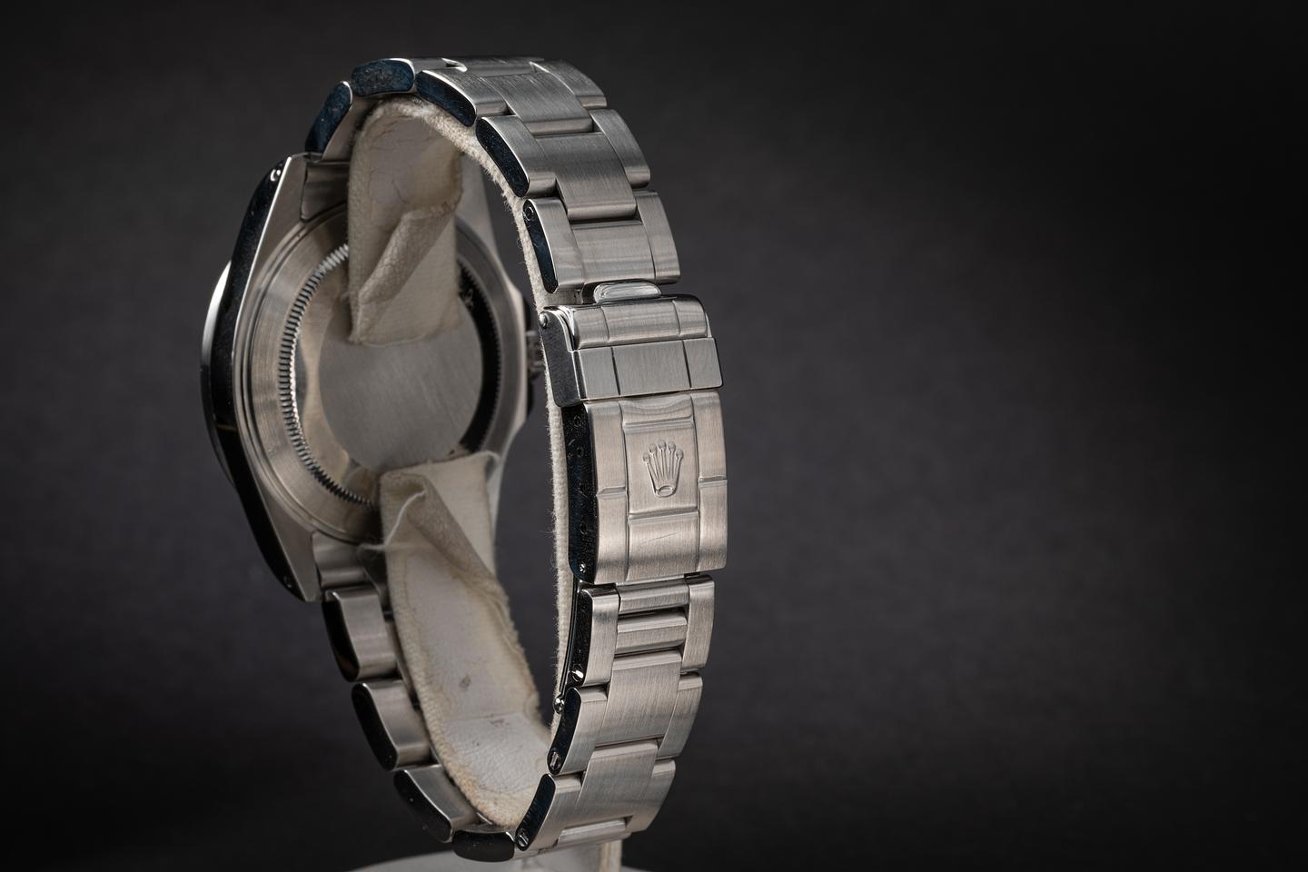 Bracelet: The 12 link oyster bracelet is excellent showing only light stretch for its age. The clasp is stamped with a matching 2000 date code.