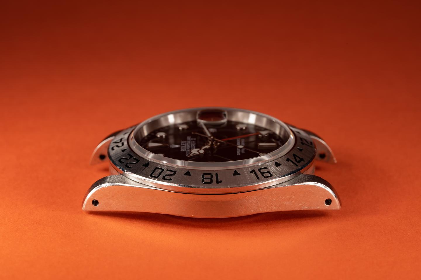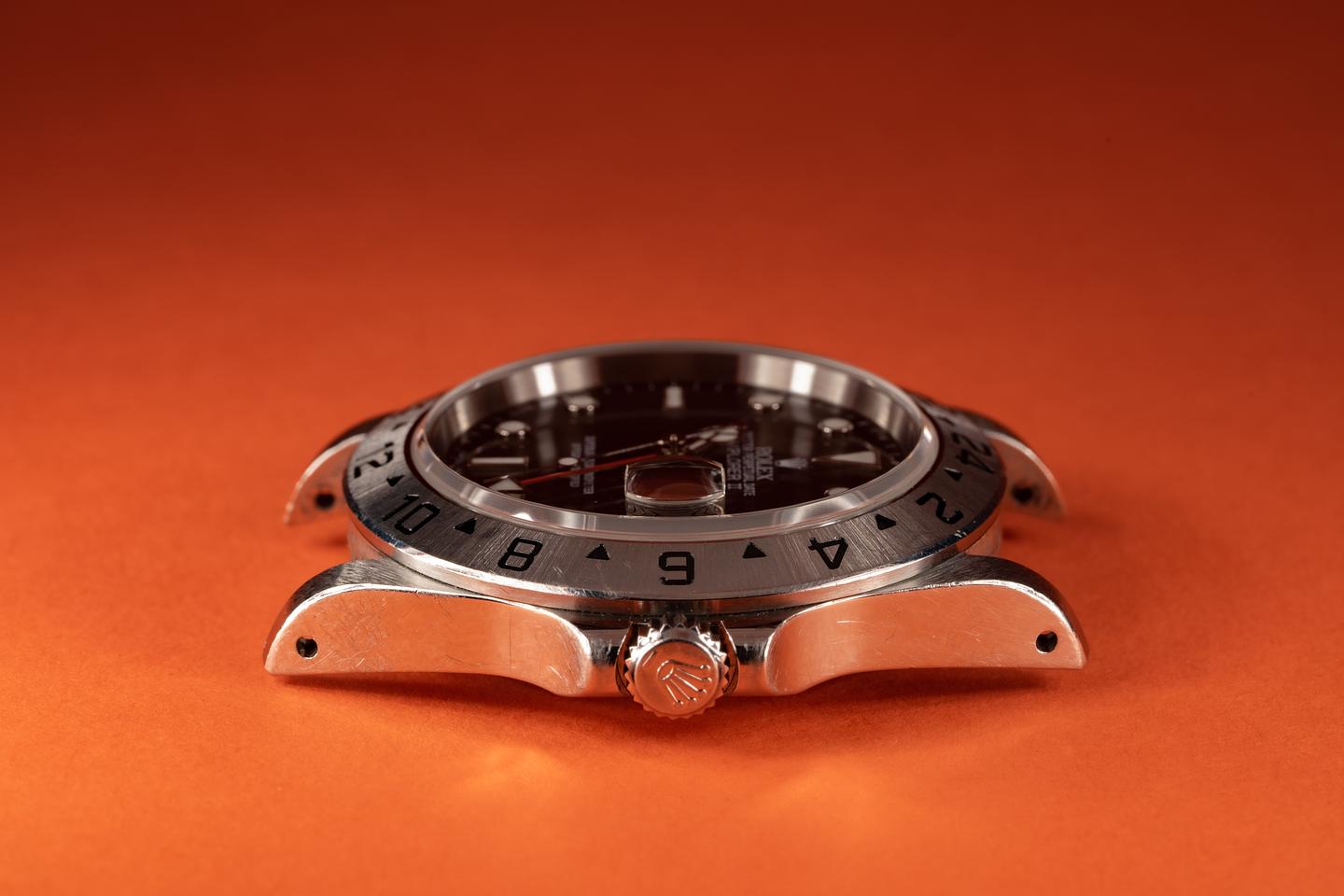 Case: Excellent thick case with sharp prominent bevels and shows some wear. The stainless bezel is also excellent showing light wear while retaining its sunburst effect finish.