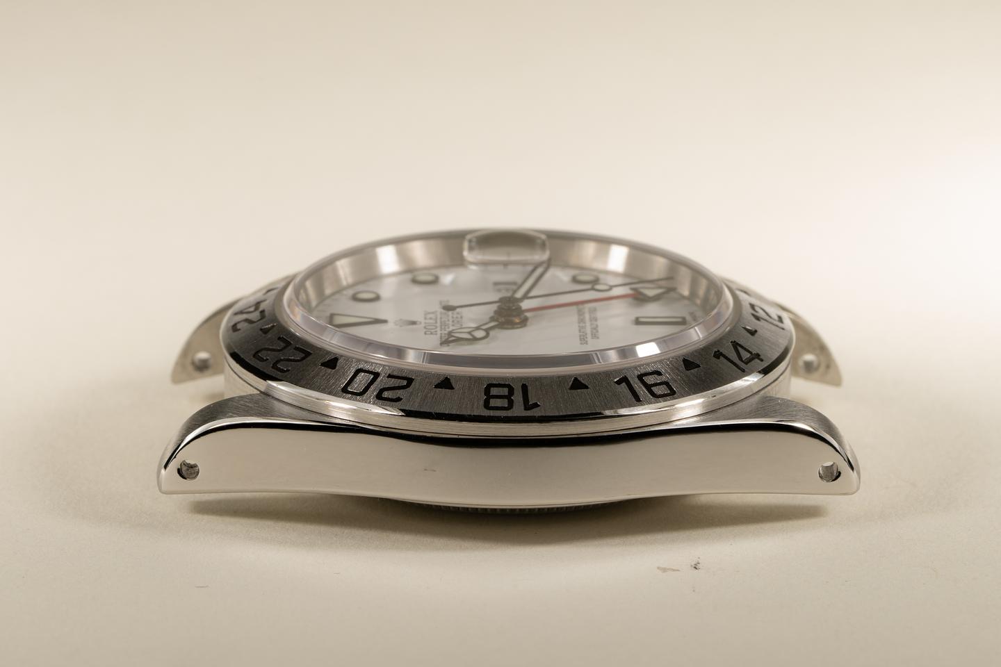 Case: Excellent case that has just been expertly refinished by LA Watchworks and features sharp prominent bevels that closely mimic the factory profile. The bezel is also excellent with a sharp sunburst finish.