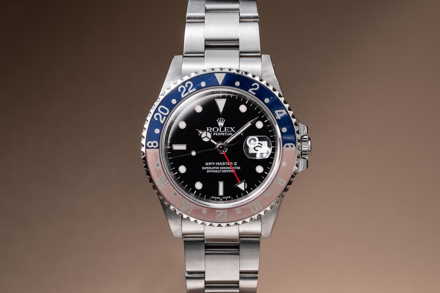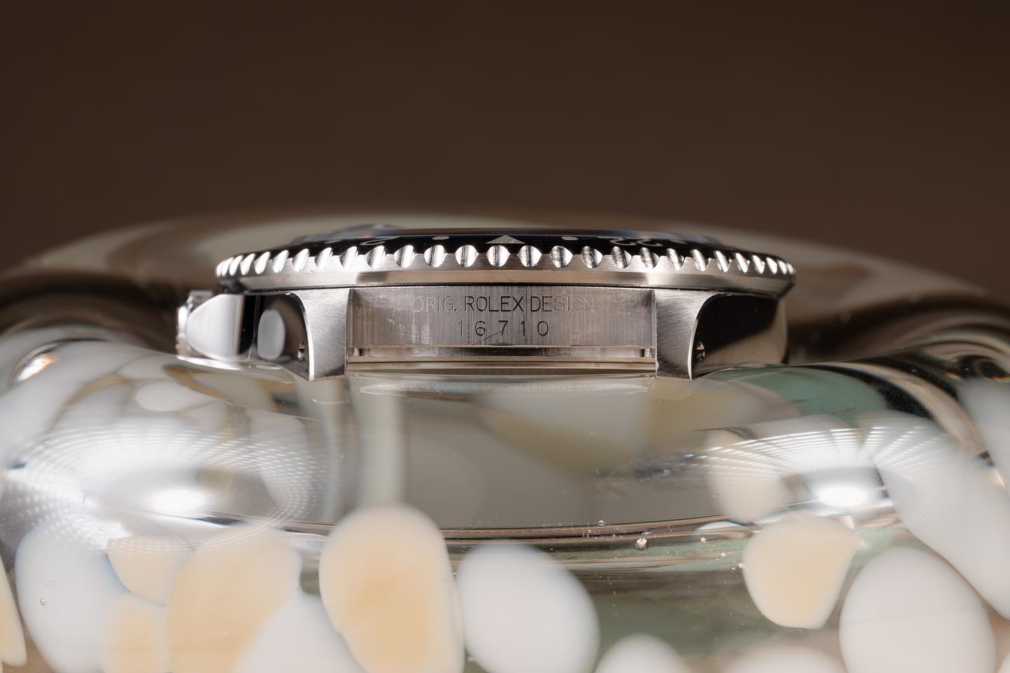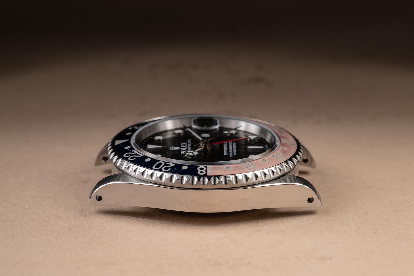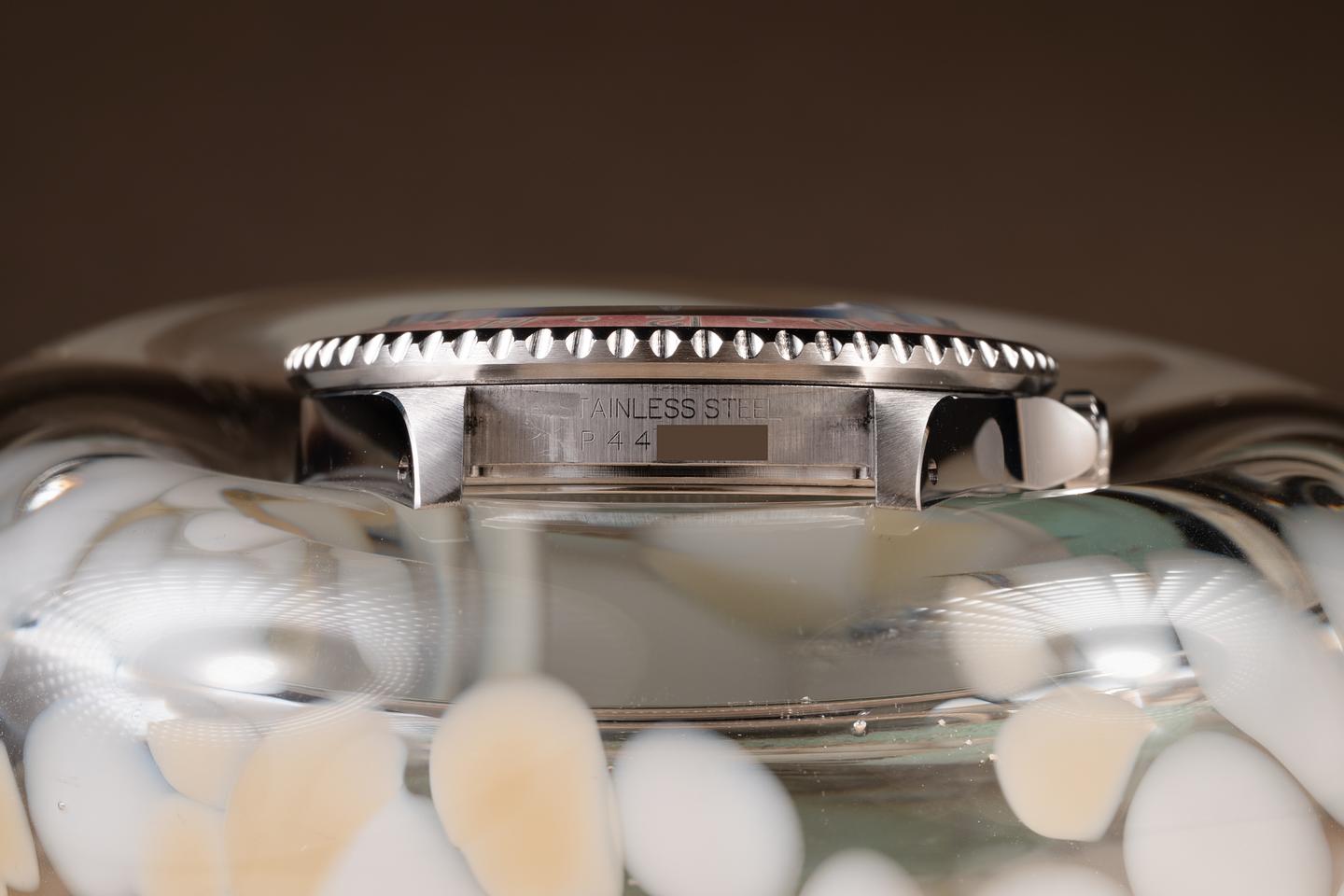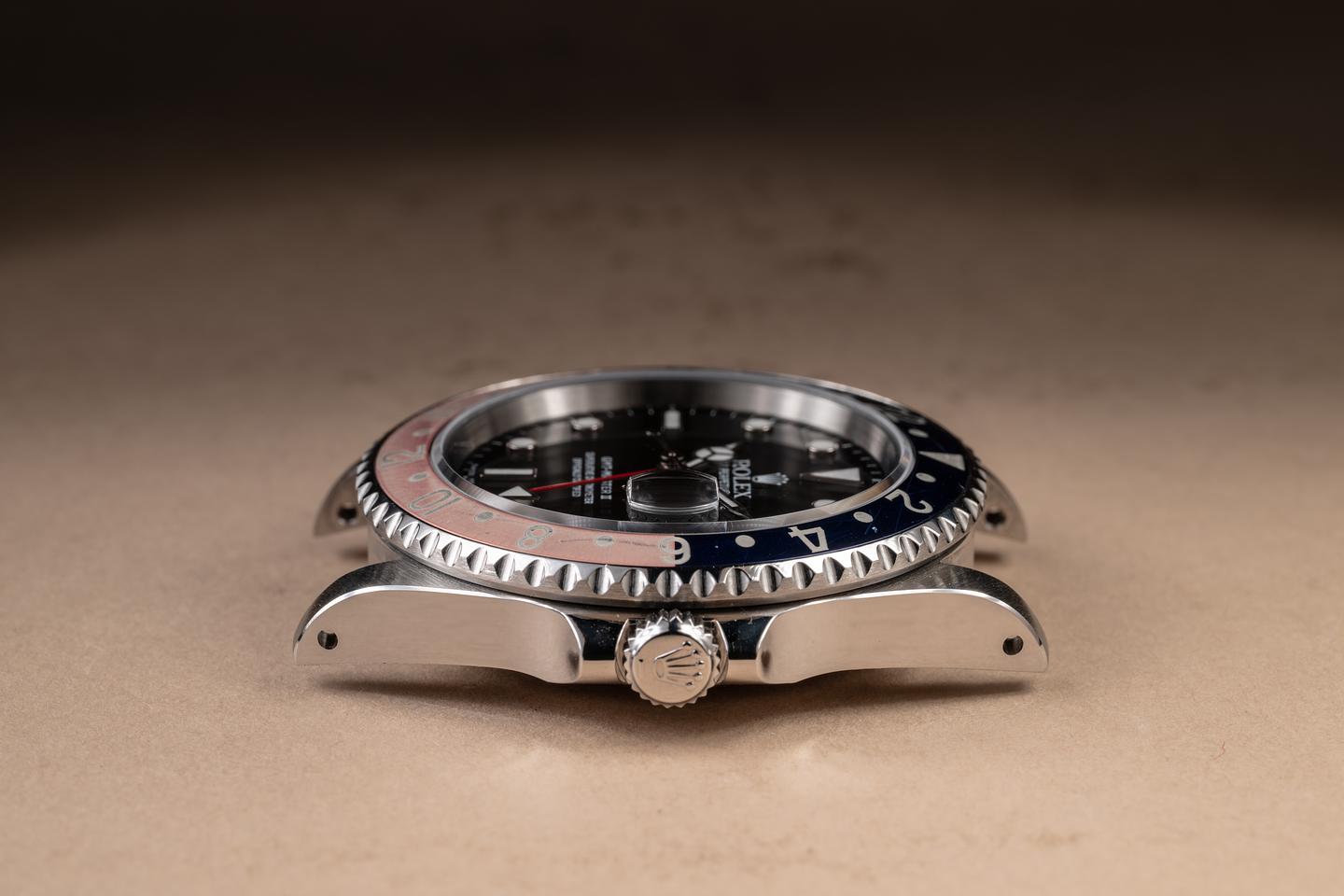 Case: The recently polished case is excellent, showing sharp, prominent bevels and only very light wear. The blue and red "Pepsi" bezel insert is also in excellent condition, showing significant fading to the red portion of the insert and only light wear from use.