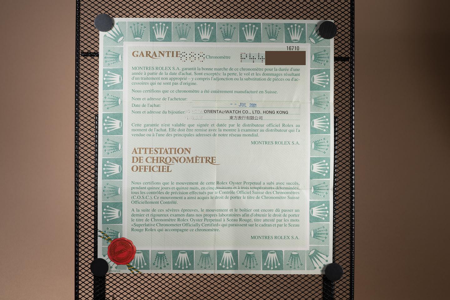 Bracelet: The 12-link Oyster bracelet is excellent, showing only very light stretch for its age. The clasp is stamped with a matching 2000 date code.