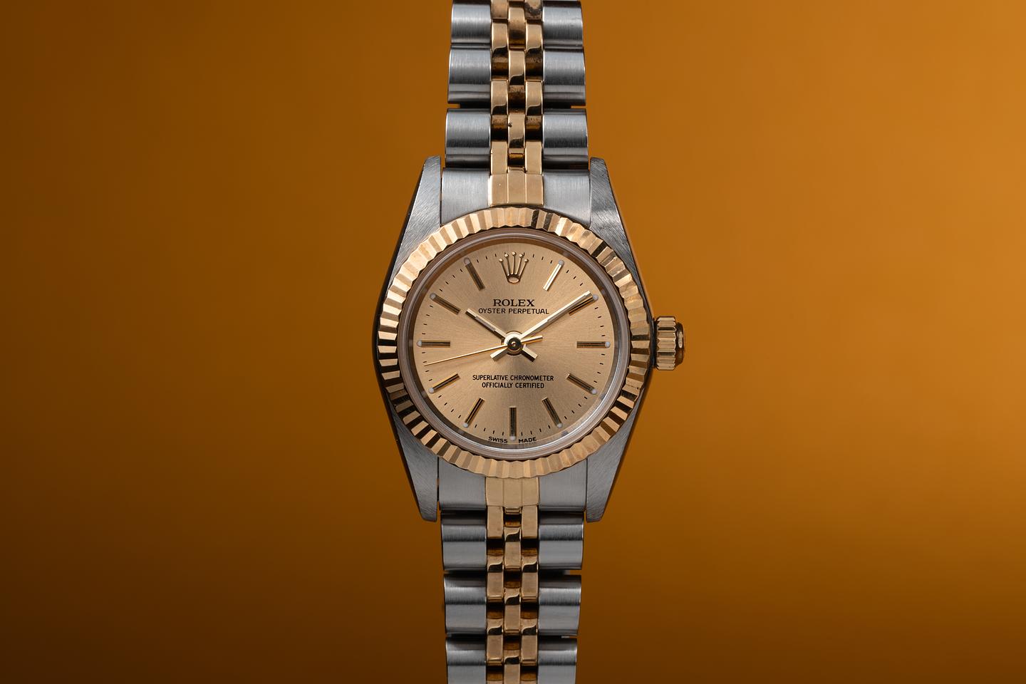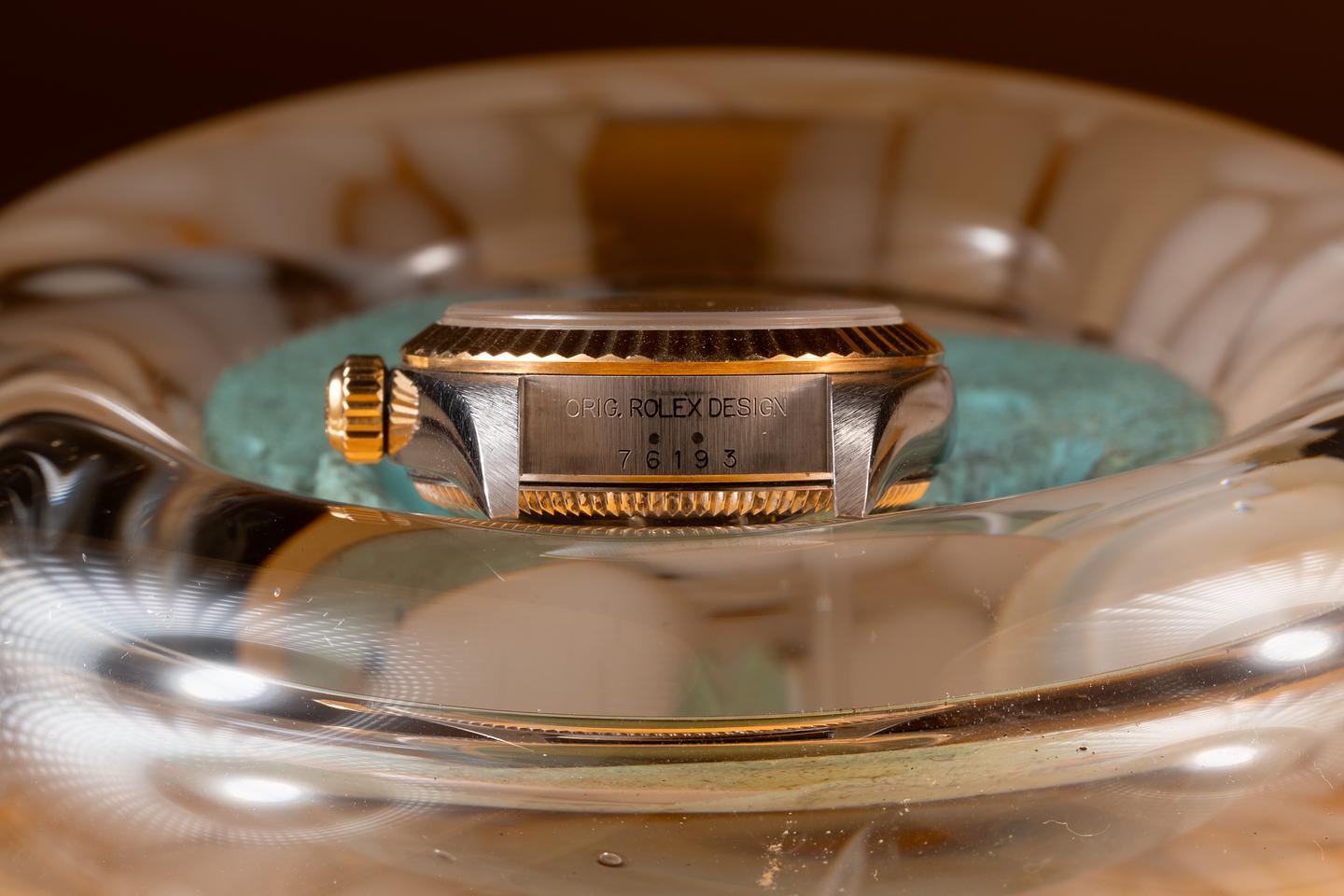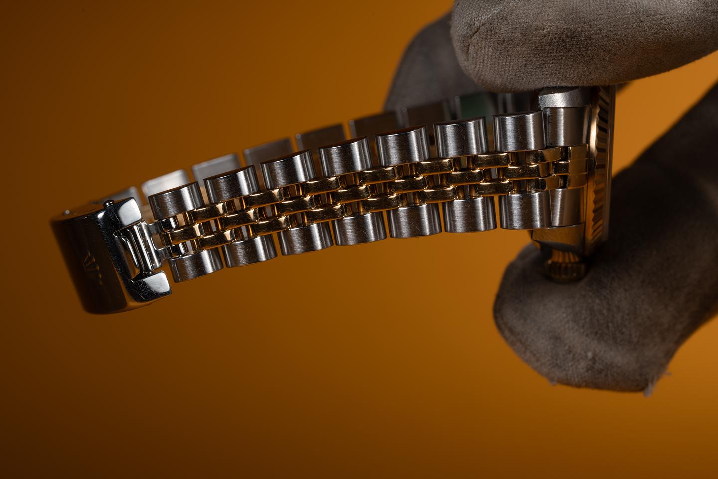 Bracelet: The 18 link two-tone Jubilee bracelet is excellent showing only very light stretch for its age. The clasp is stamped with a matching 2000 date code.