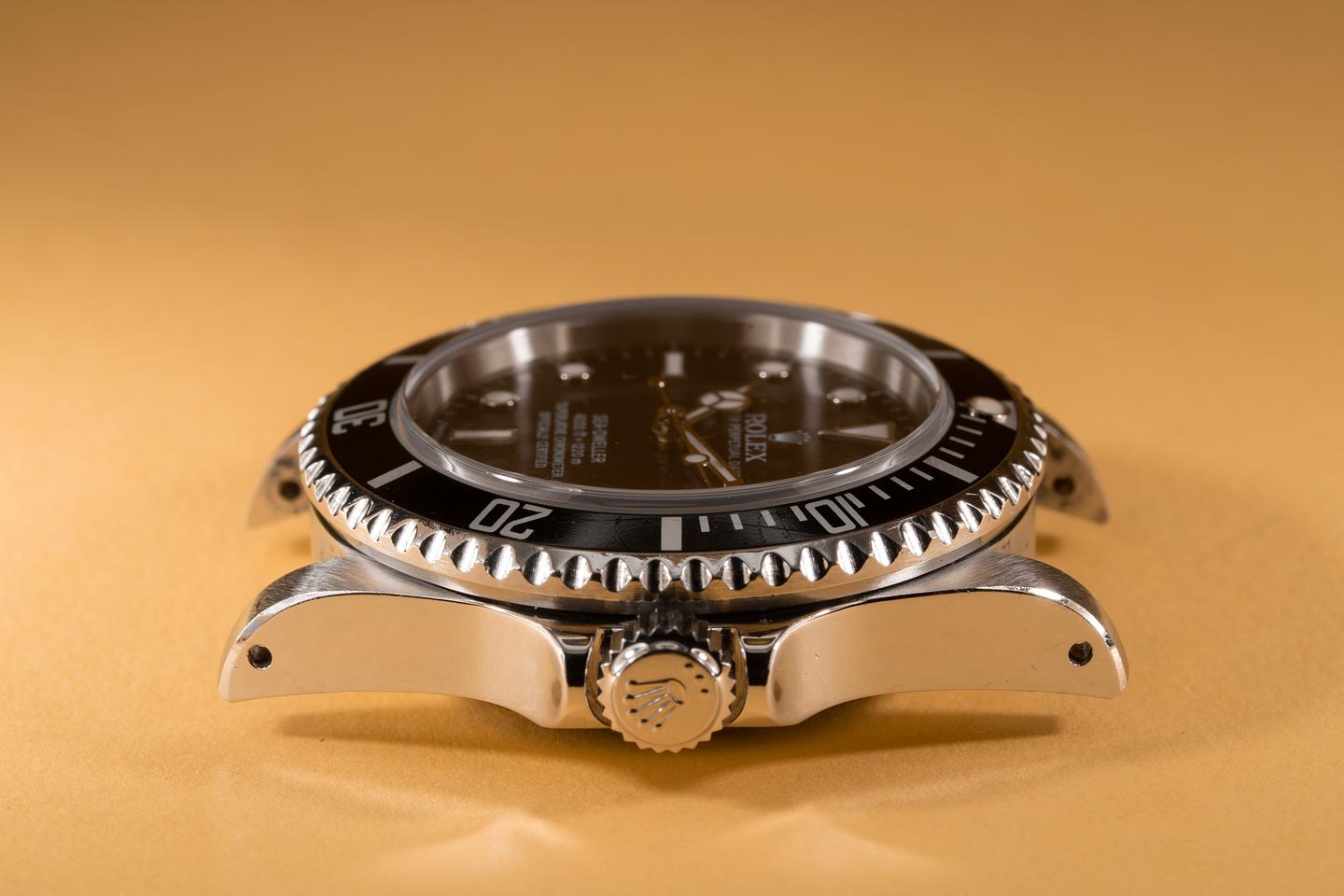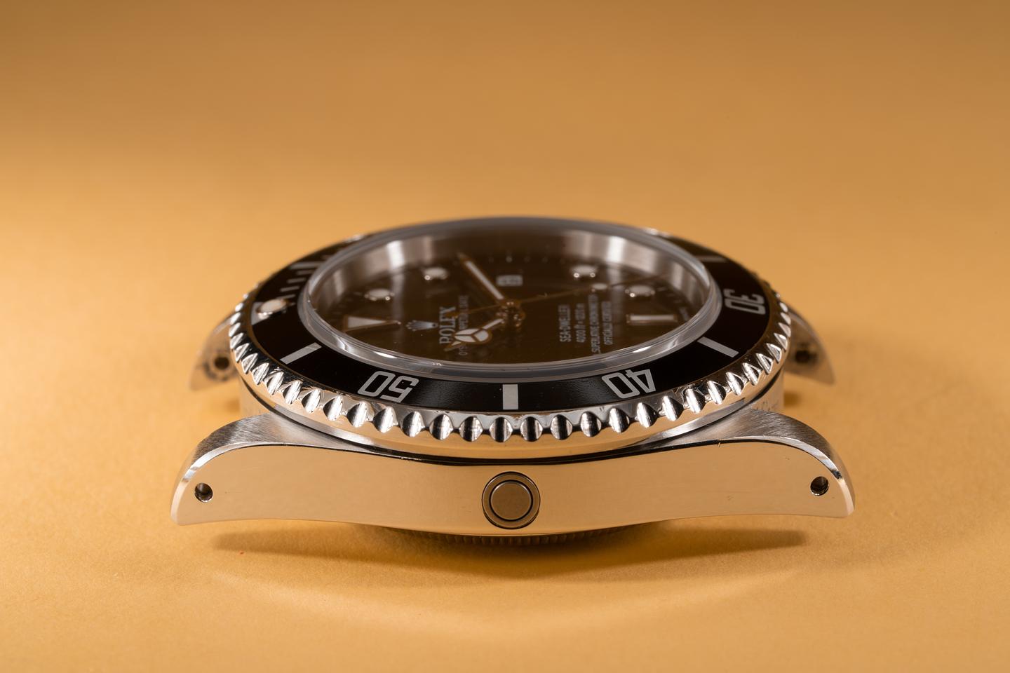 Case: The thick and even case is excellent showing sharp prominent bevels and some light wear from use. The black bezel is also in excellent condition showing some light wear from use.