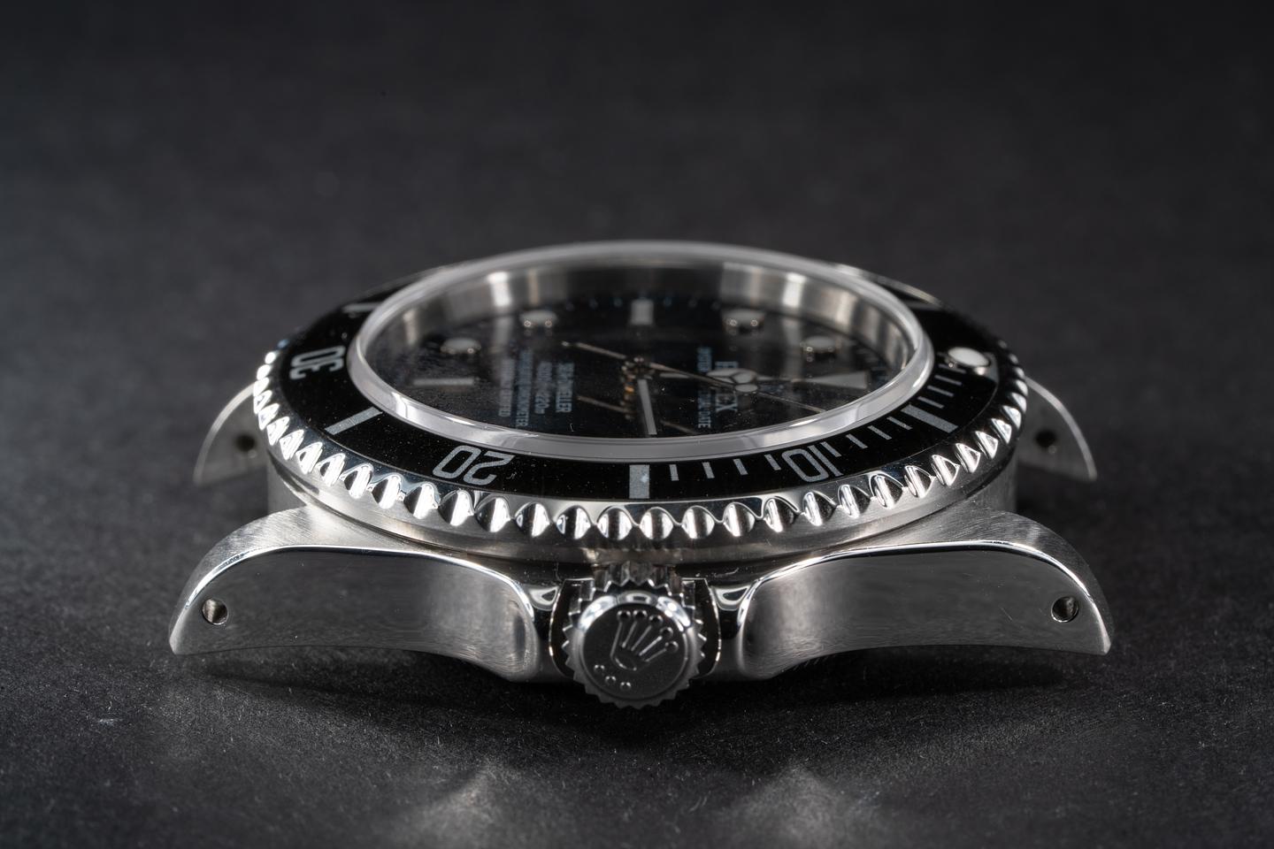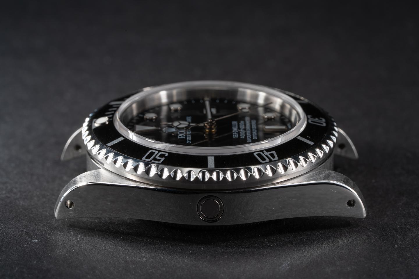 Case: The thick case is excellent showing prominent bevels and only very light wear from use. The black bezel insert is also in excellent condition showing only very light wear.