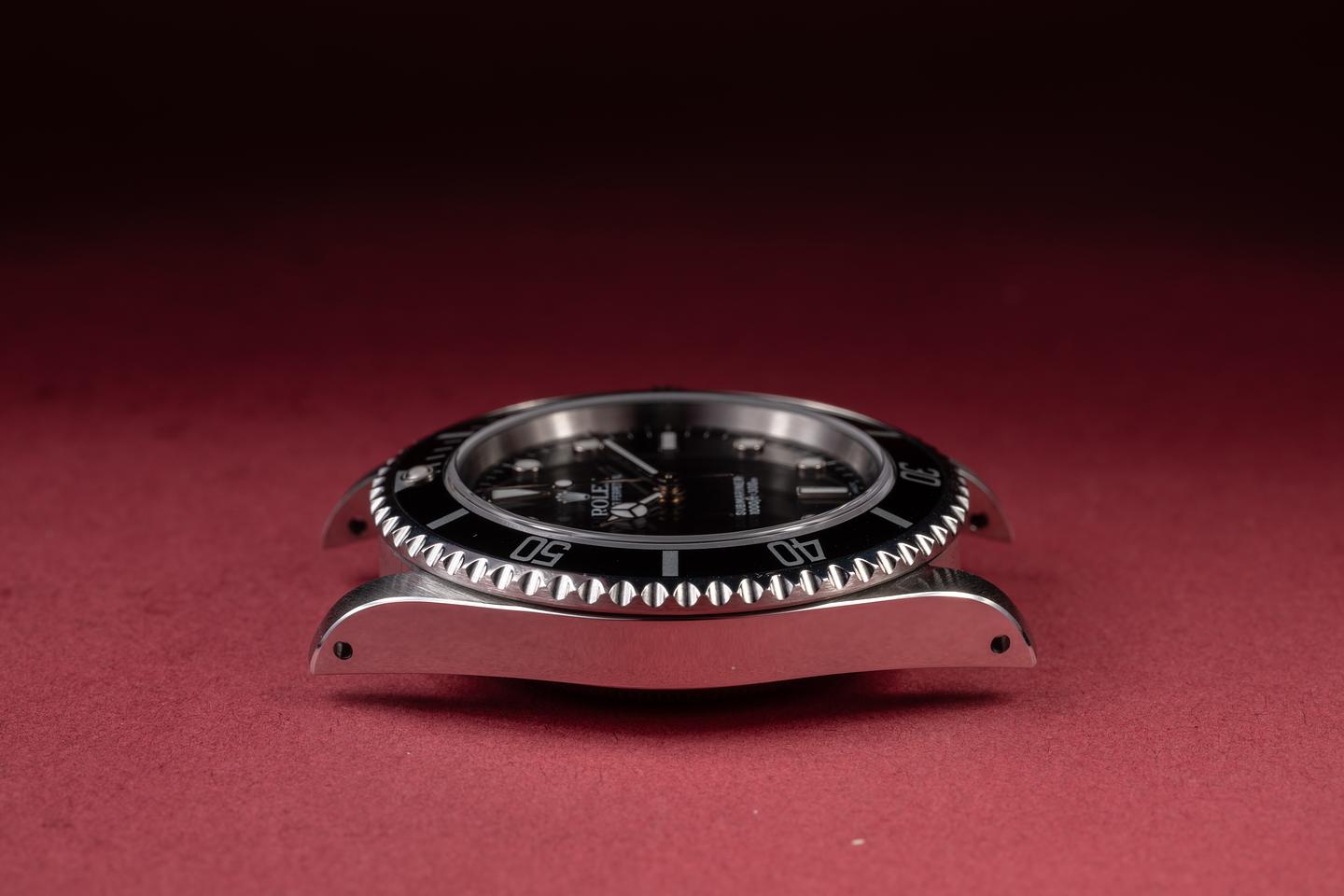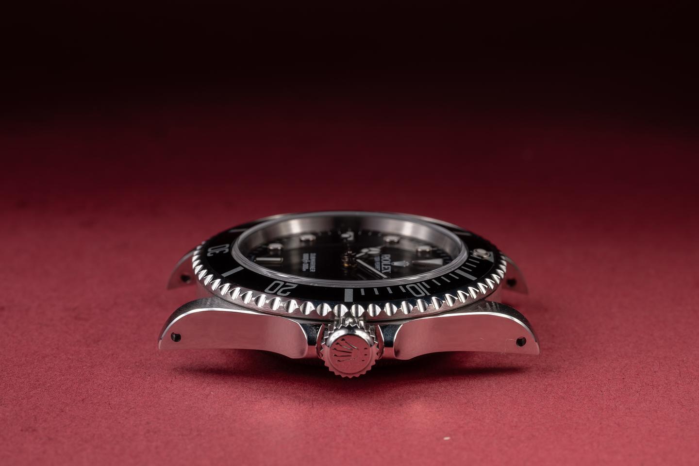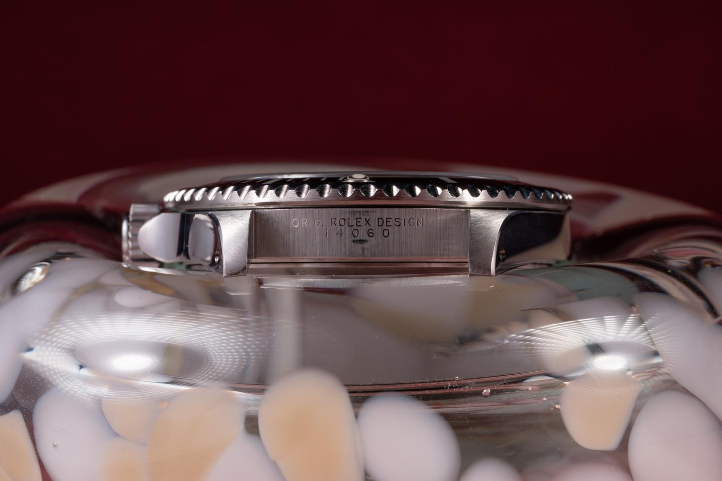 Case: The recently polished case is excellent, showing sharp, prominent bevels and only very light wear. The black bezel insert is also in excellent condition, showing only very light wear from use.