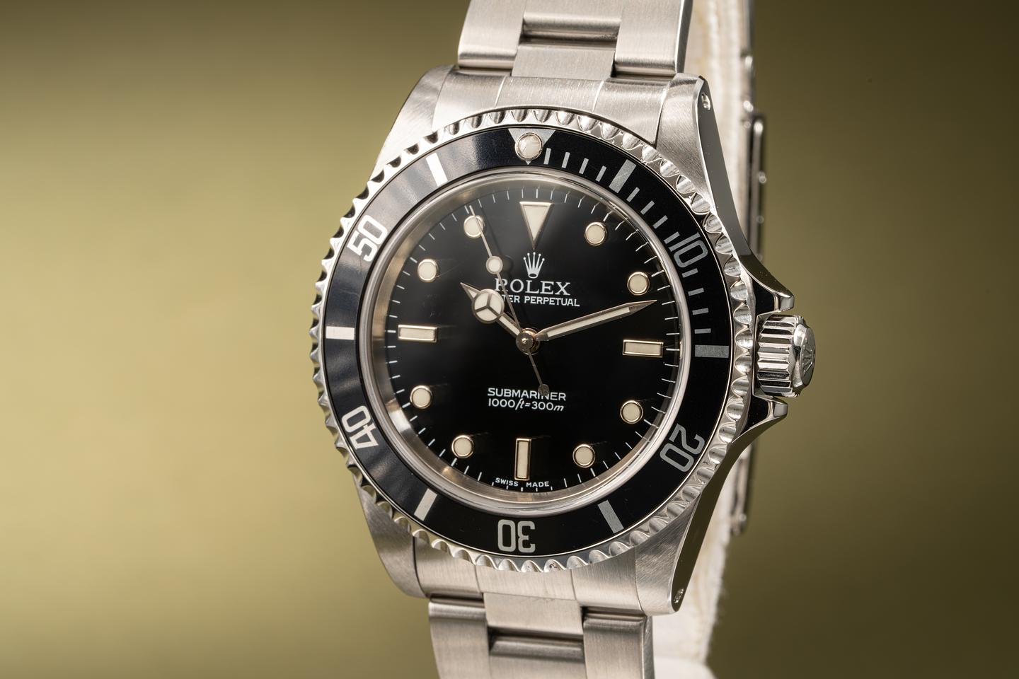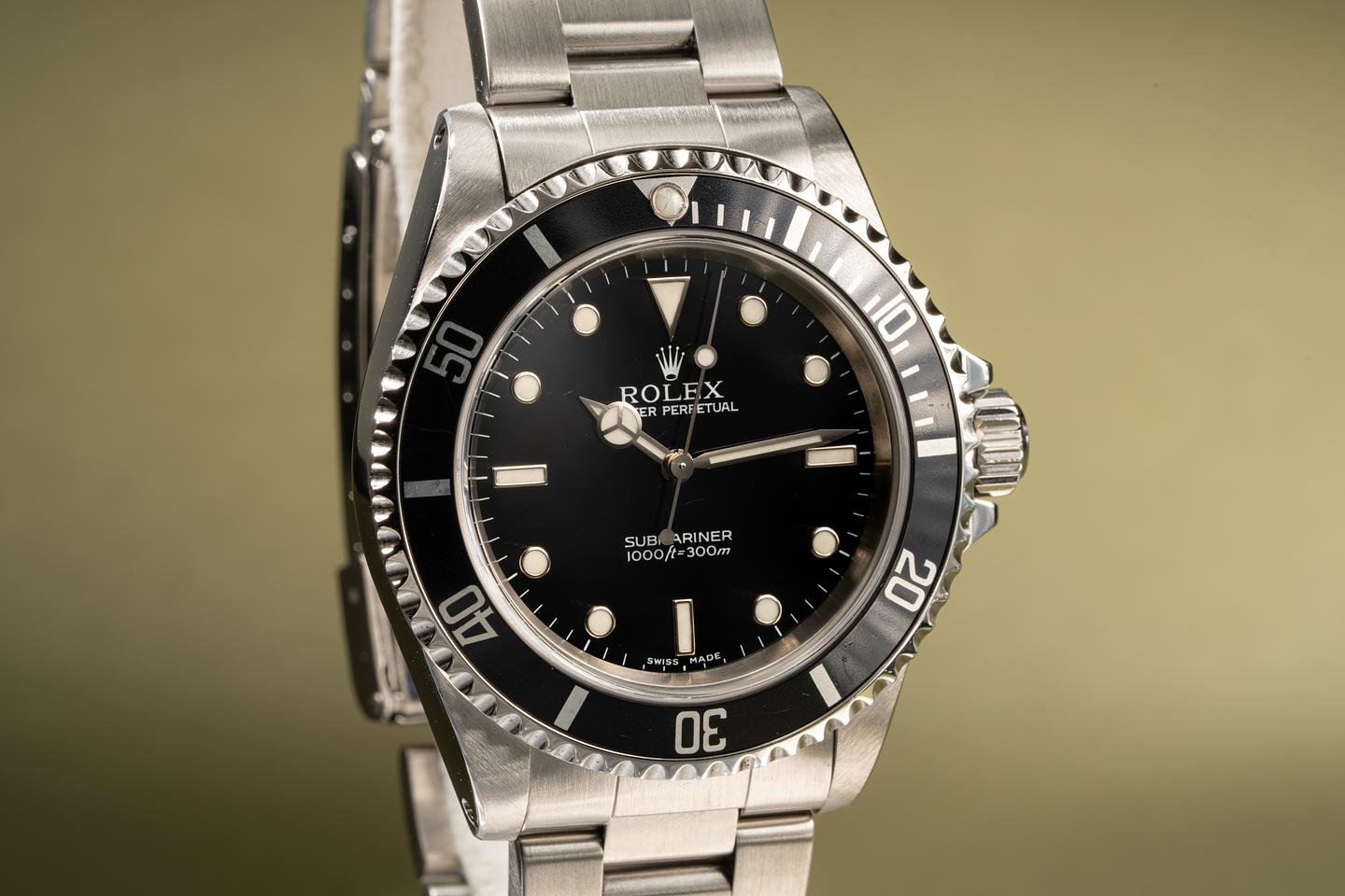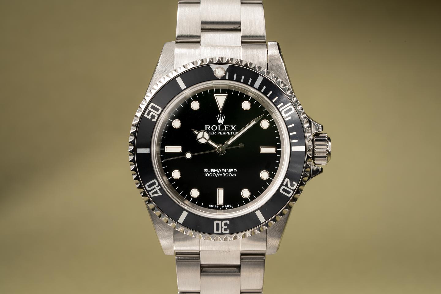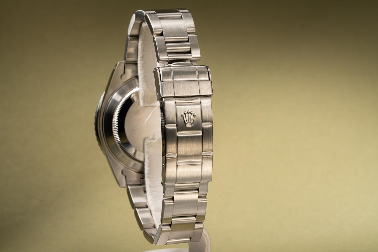Bracelet: Excellent 12 link oyster bracelet with very light stretch for its age. The clasp is stamped with a 2001 date code.