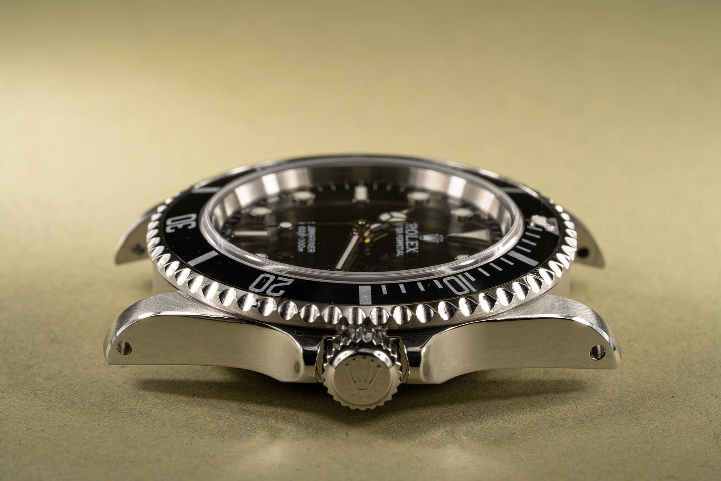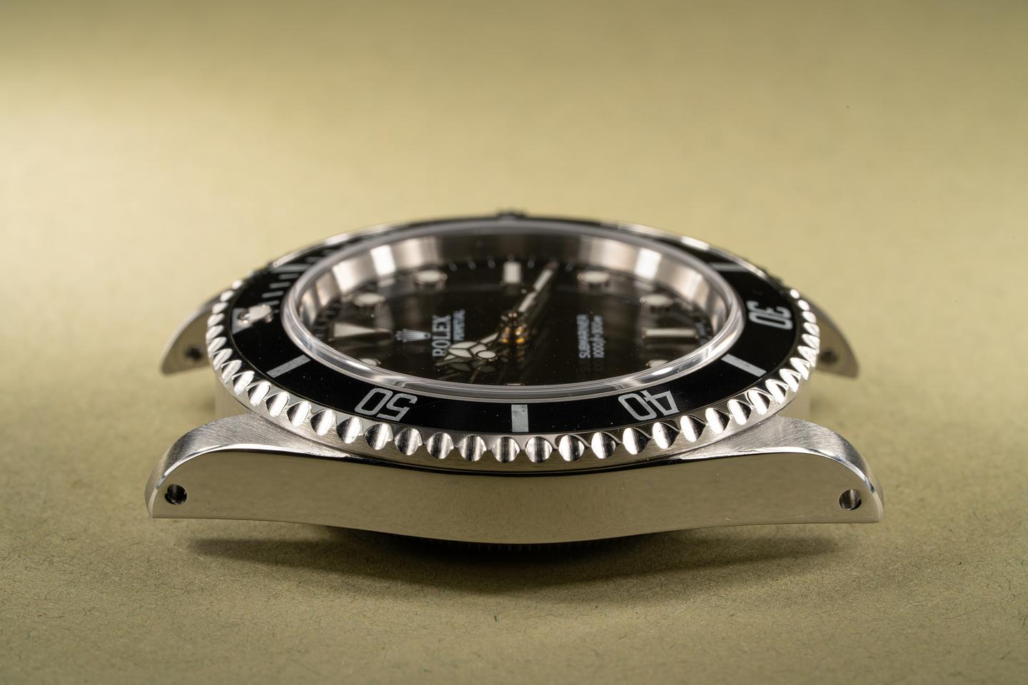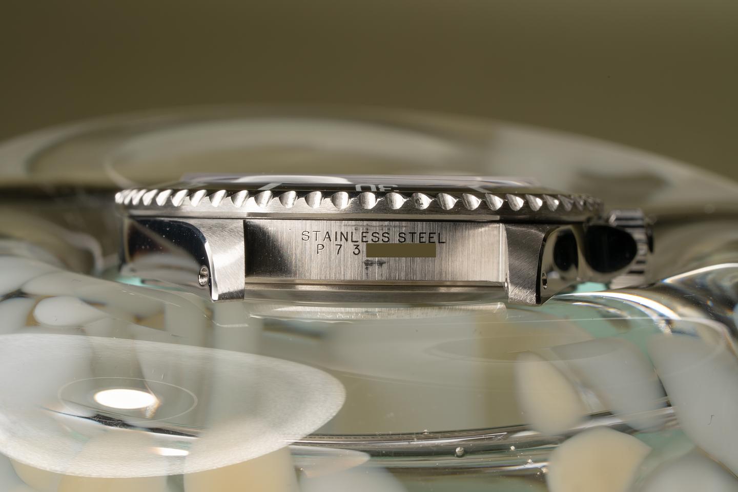 Case: Excellent case that has just been refinished by LA Watch Works and features sharp prominent bevels that closely mimic the factory profile. The black bezel insert is in excellent condition and shows light wear.