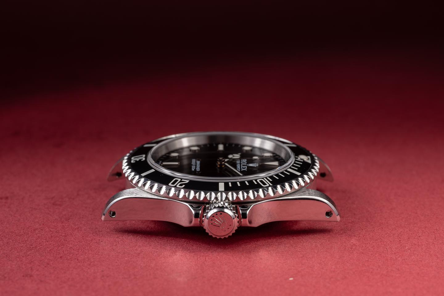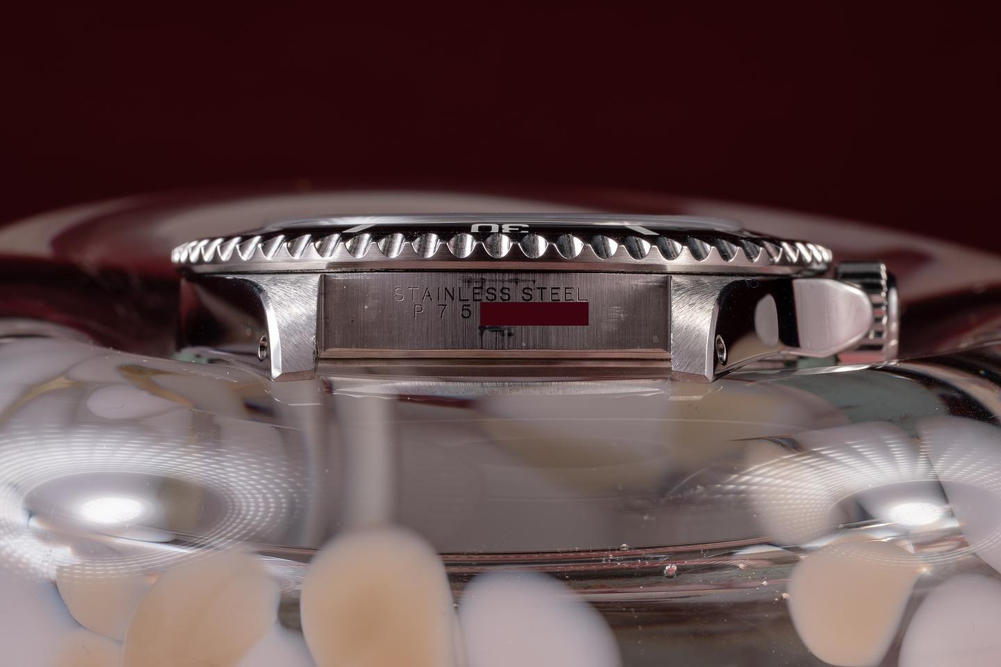 Case: The previously polished case is excellent, showing only light wear from use. The black bezel insert is also in excellent condition, showing only light wear from use.