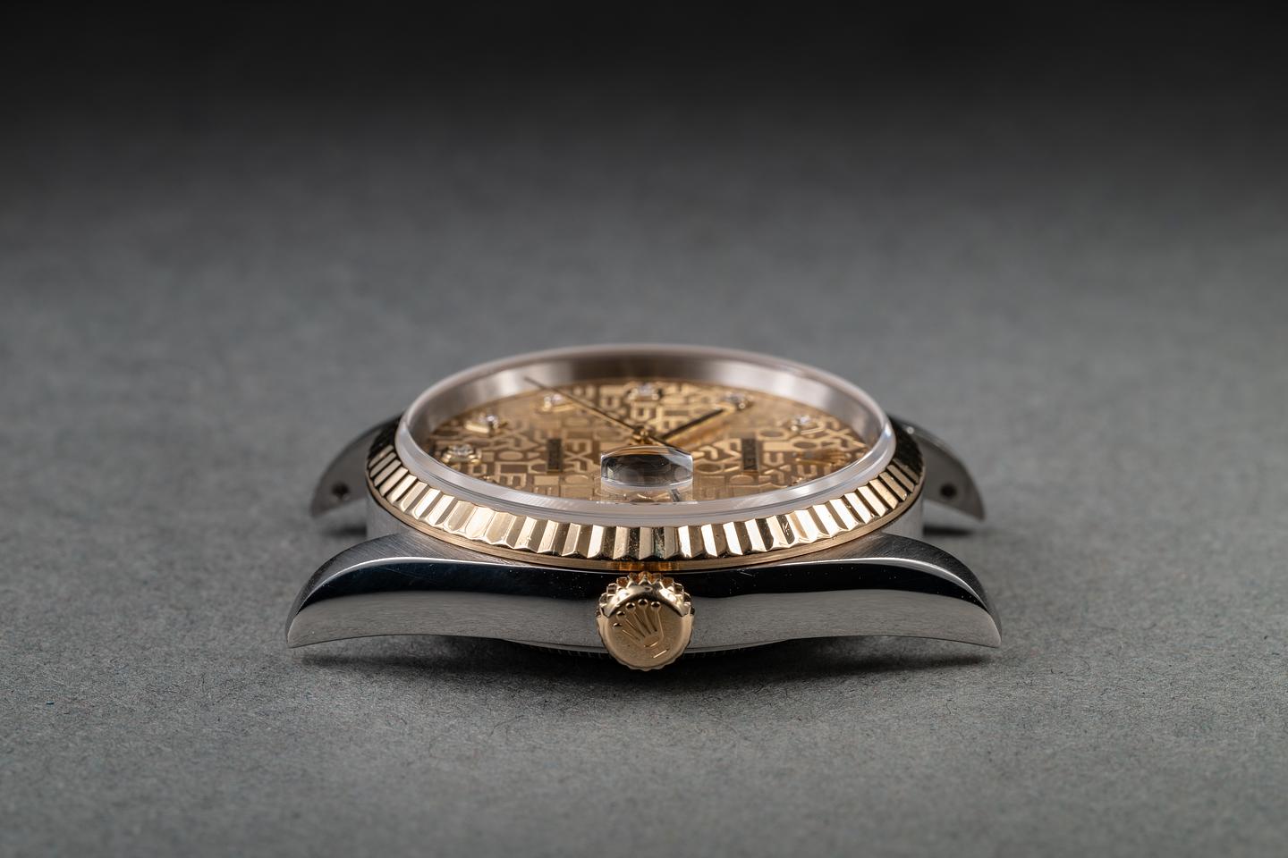 Bracelet: The 18-link two-tone Jubilee bracelet is excellent, showing a very light stretch for its age. The clasp is stamped with a 2001 date code. This Jubilee bracelet will fit a wrist size up to 6.5", 16.5 cm.