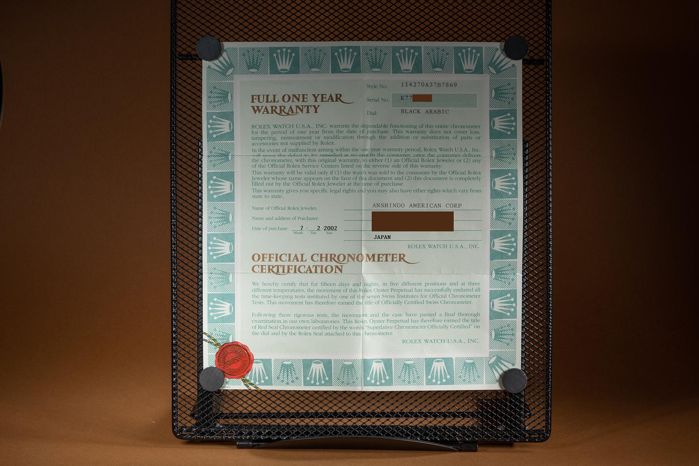 Bracelet: The 12 link Oyster bracelet is excellent showing only very light stretch for its age. The clasp is stamped with a matching 2001 date code.