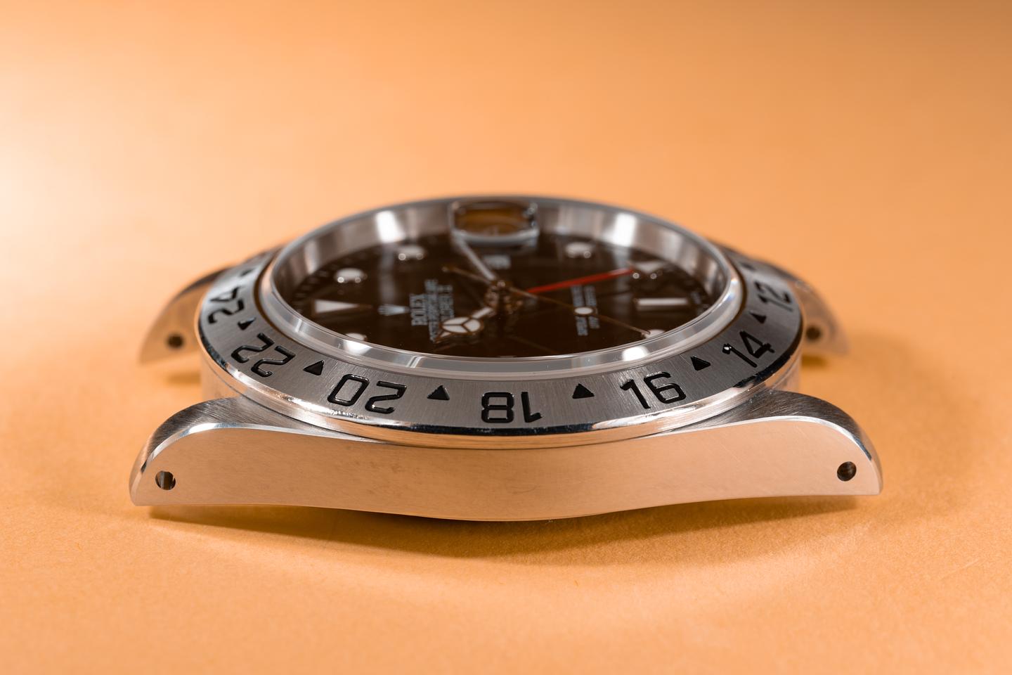 Case: The thick and even case is excellent showing sharp prominent bevels and only very light wear from use. The stainless bezel is also in excellent condition showing a sharp well defined sunburst finish.