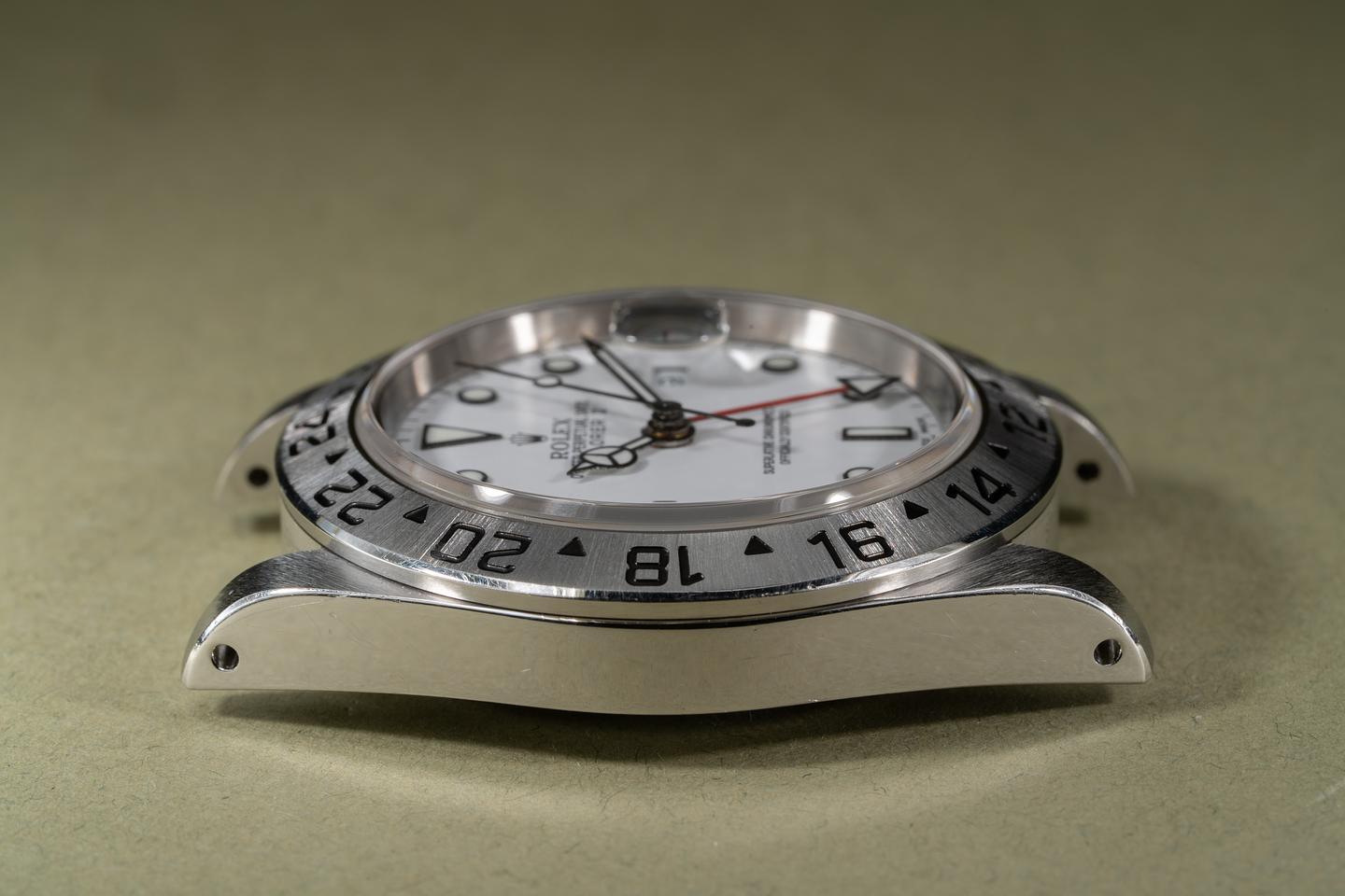 Dial: The glossy white Luminova dial is excellent showing no visible wear. The original factory hands are matching.