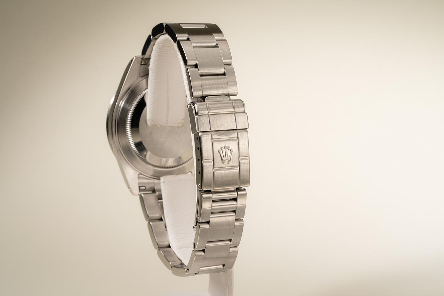 Bracelet: The 12 link oyster bracelet is excellent and shows only light stretch for its age. The clasp is stamped with a matching 2001 date code.