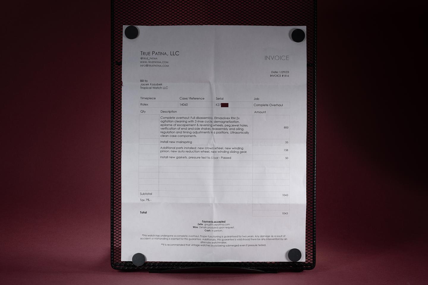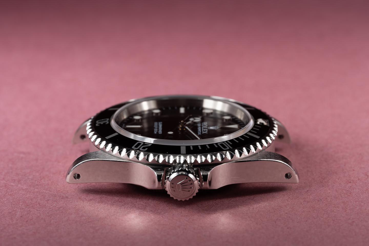 Case: The thick and even case is excellent showing prominent bevels and some light wear from use. he black bezel insert is also in excellent condition showing only very light wear.