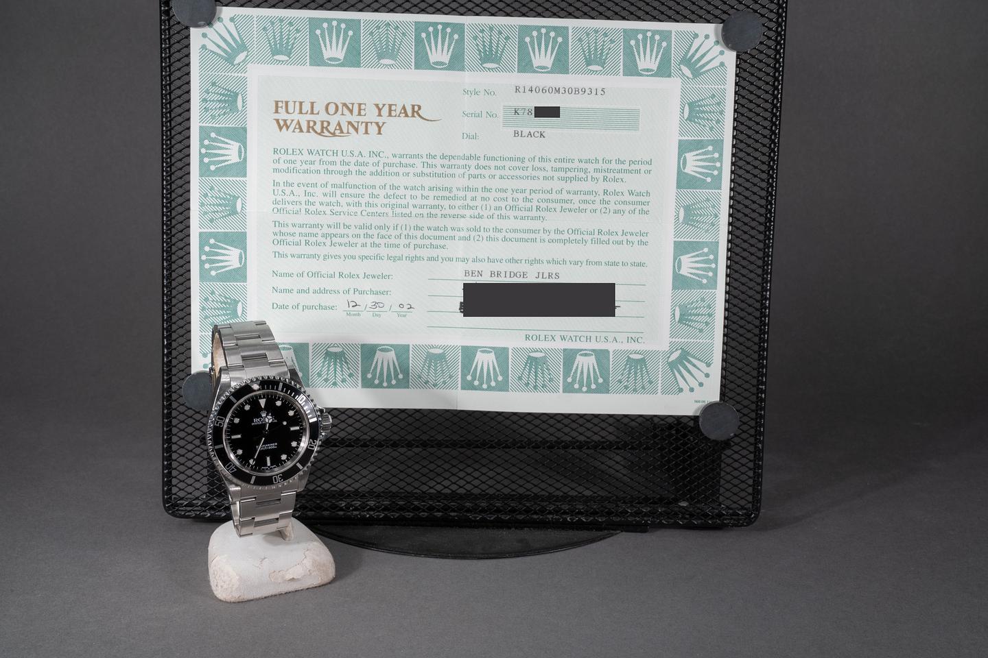 Bracelet: The 11 link Oyster bracelet is excellent showing only very light stretch for its age. The clasp is stamped with a matching 2001 date code.