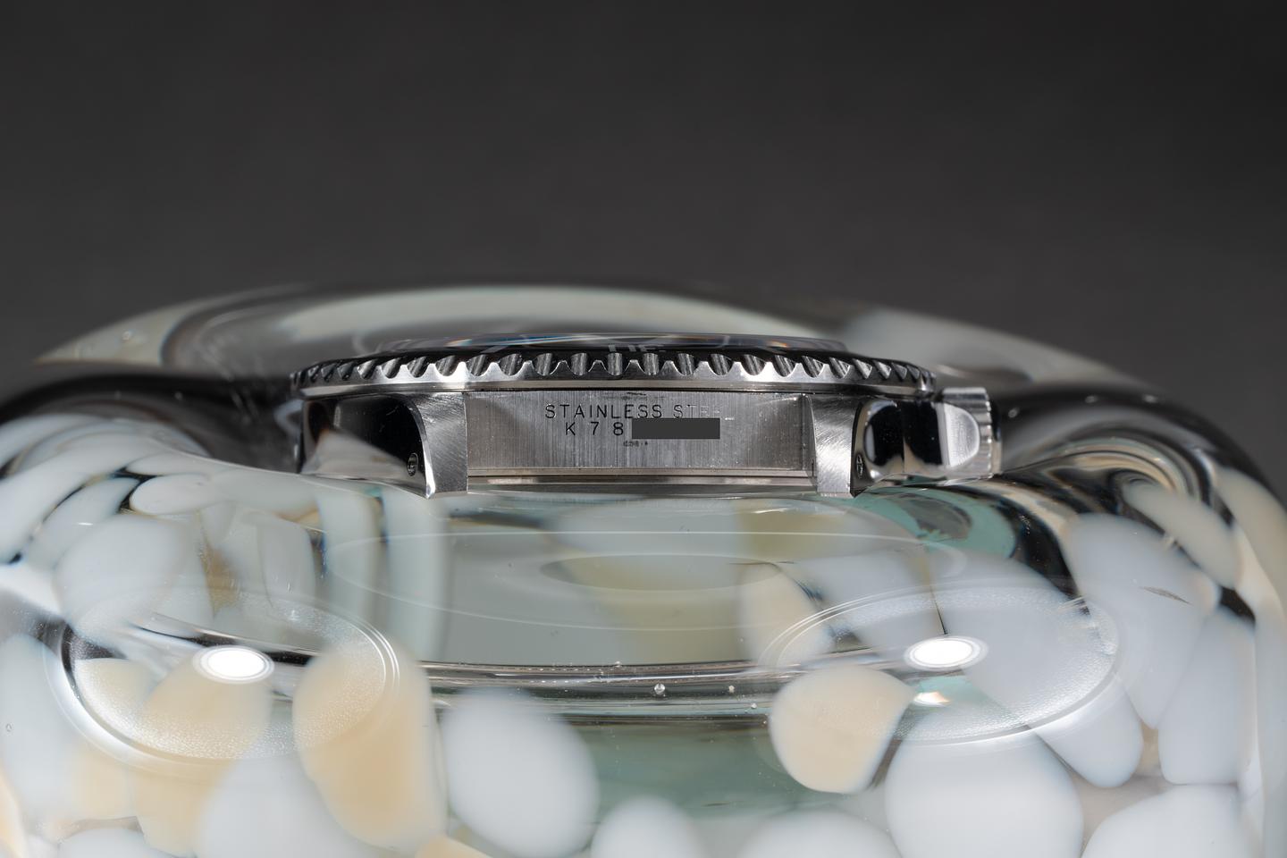 Case: The recently polished case is excellent showing sharp prominent bevels and only very light wear from use. The black bezel insert is also in excellent condition showing only very light wear from use.
