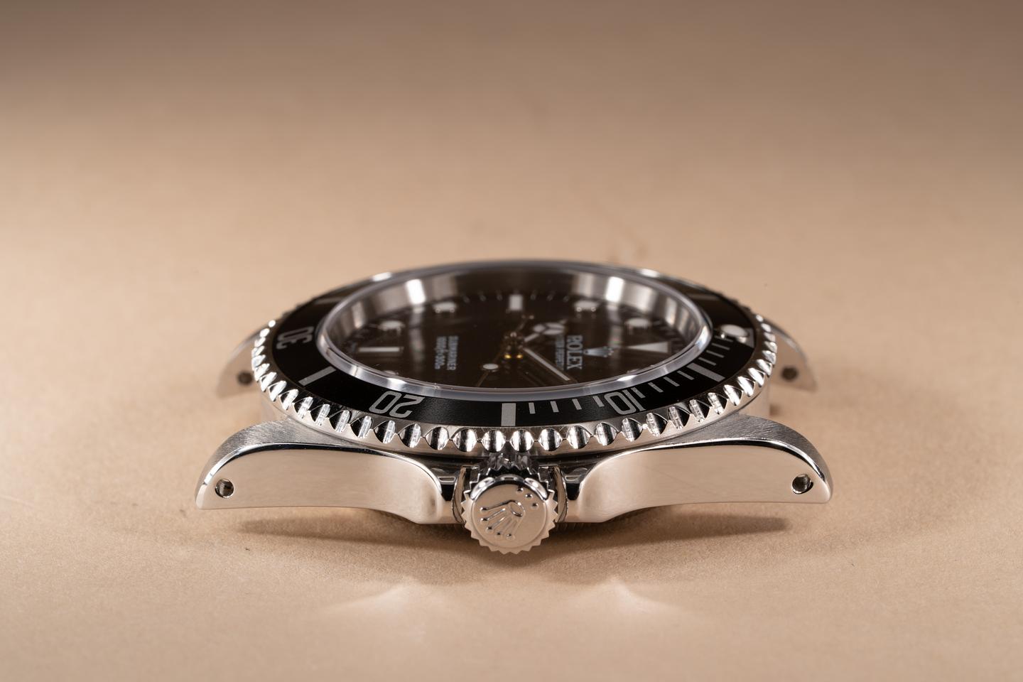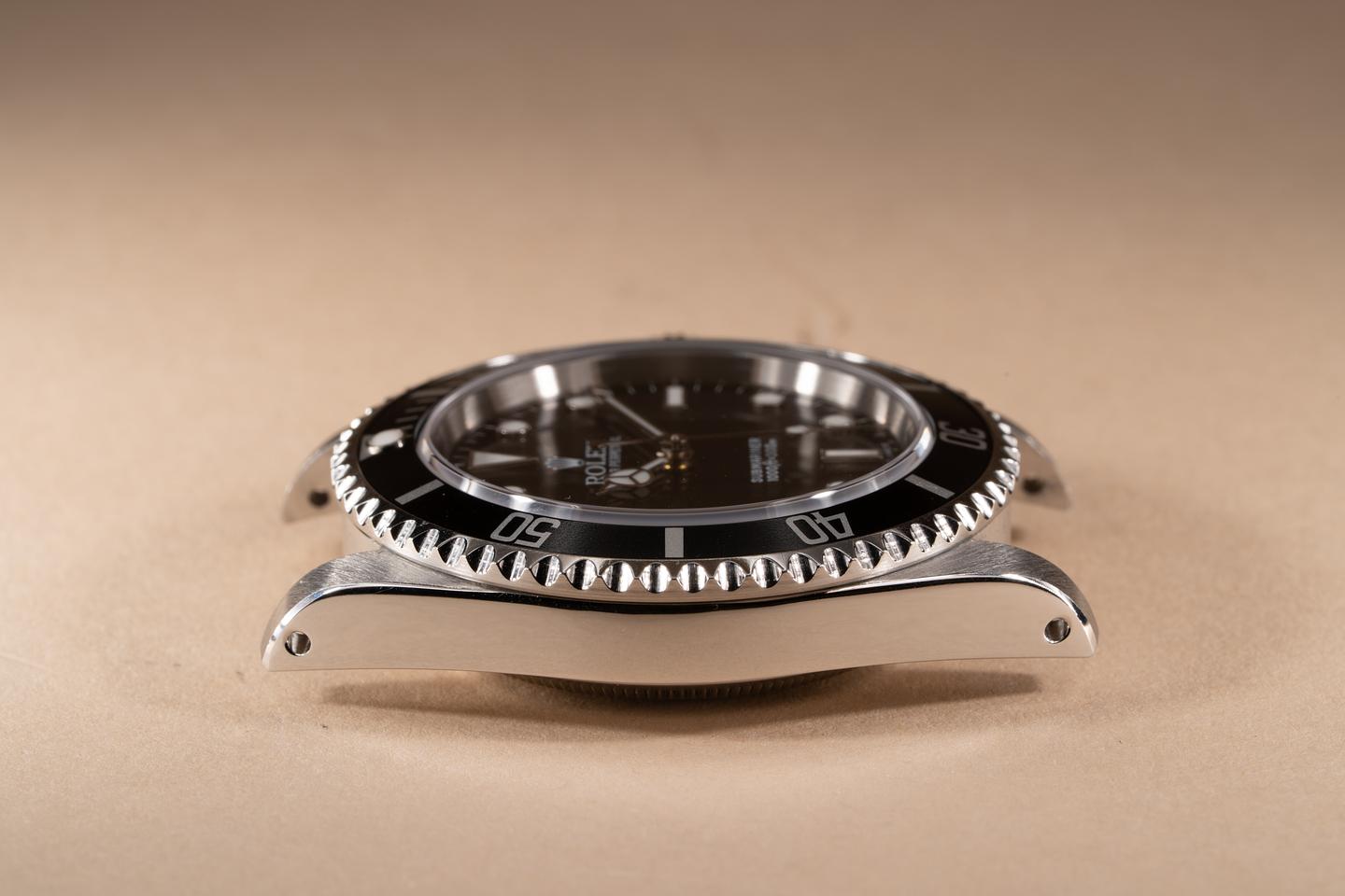 Case: The previously polished case is excellent showing sharp prominent bevels and only light wear from use. The black bezel insert is also in excellent condition showing only light wear from use.