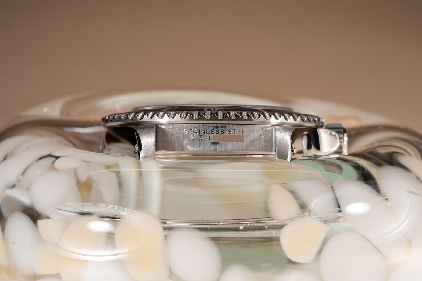 Dial: The glossy black luminova dial is excellent showing no visible wear. The original factory hands are matching.