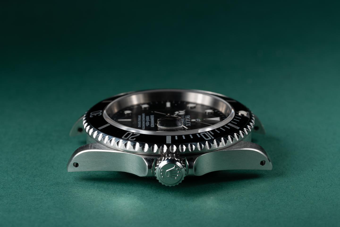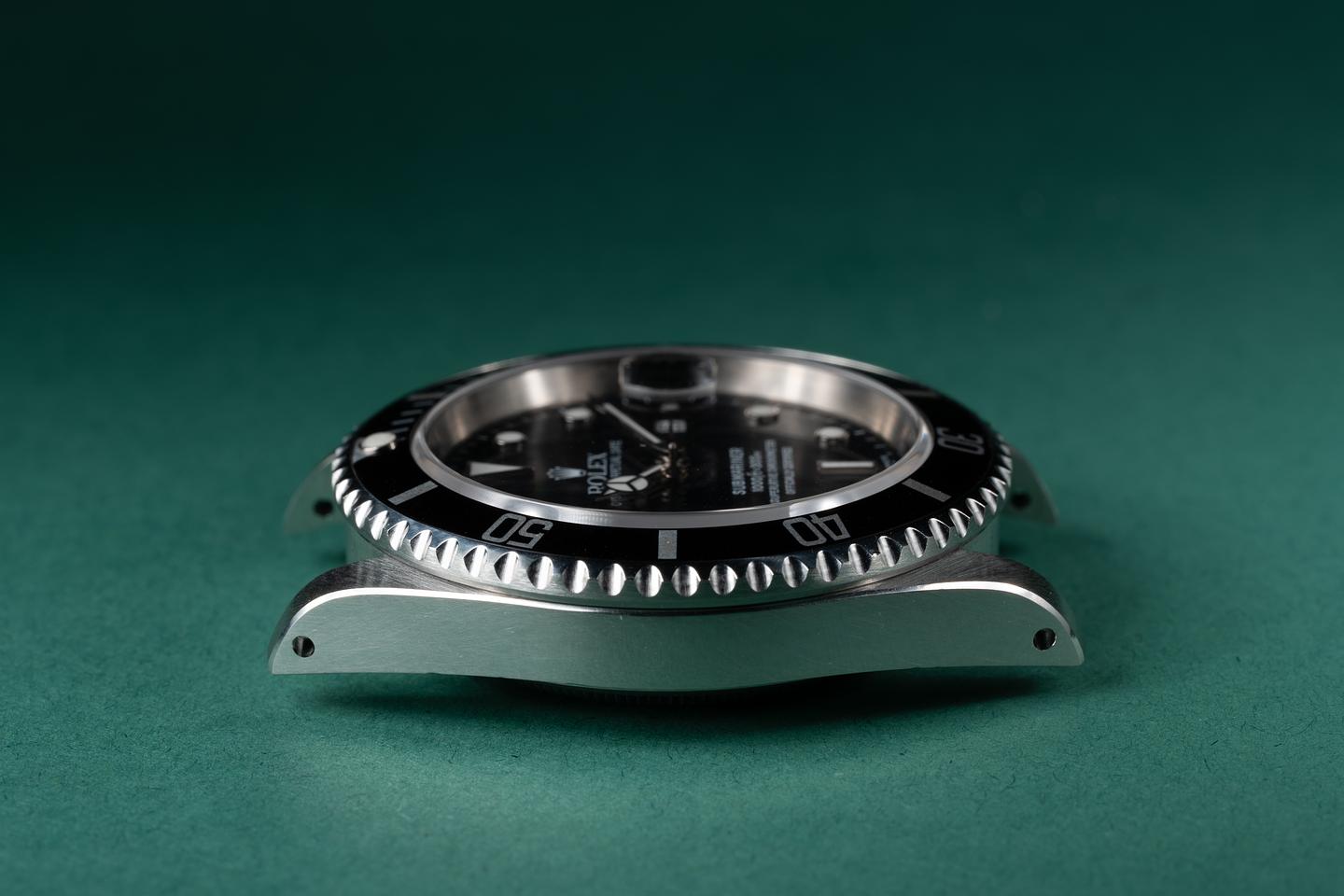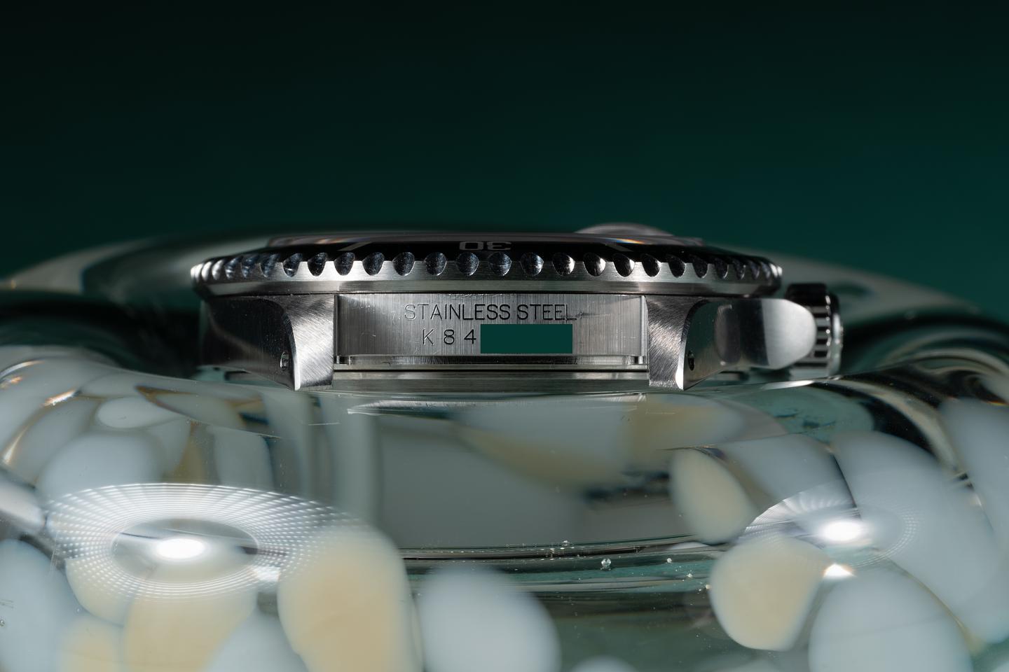 Case: The excellent no holes case has just returned from polishing showing sharp prominent bevels. The black bezel insert is also in excellent condition showing only light wear from use.