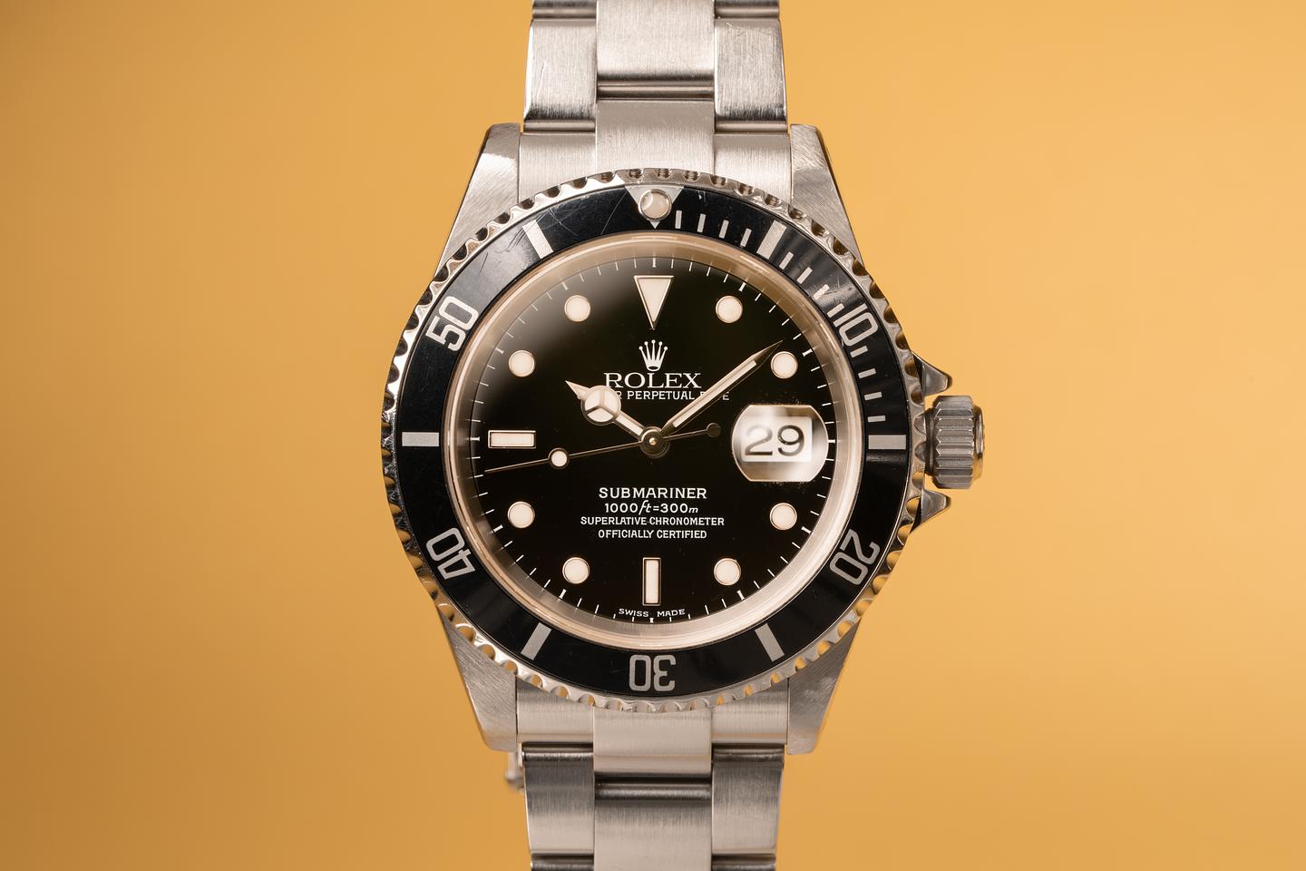 Case: The recently polished case is excellent showing prominent bevels. The black bezel insert is also in excellent condition and shows some light wear from use.