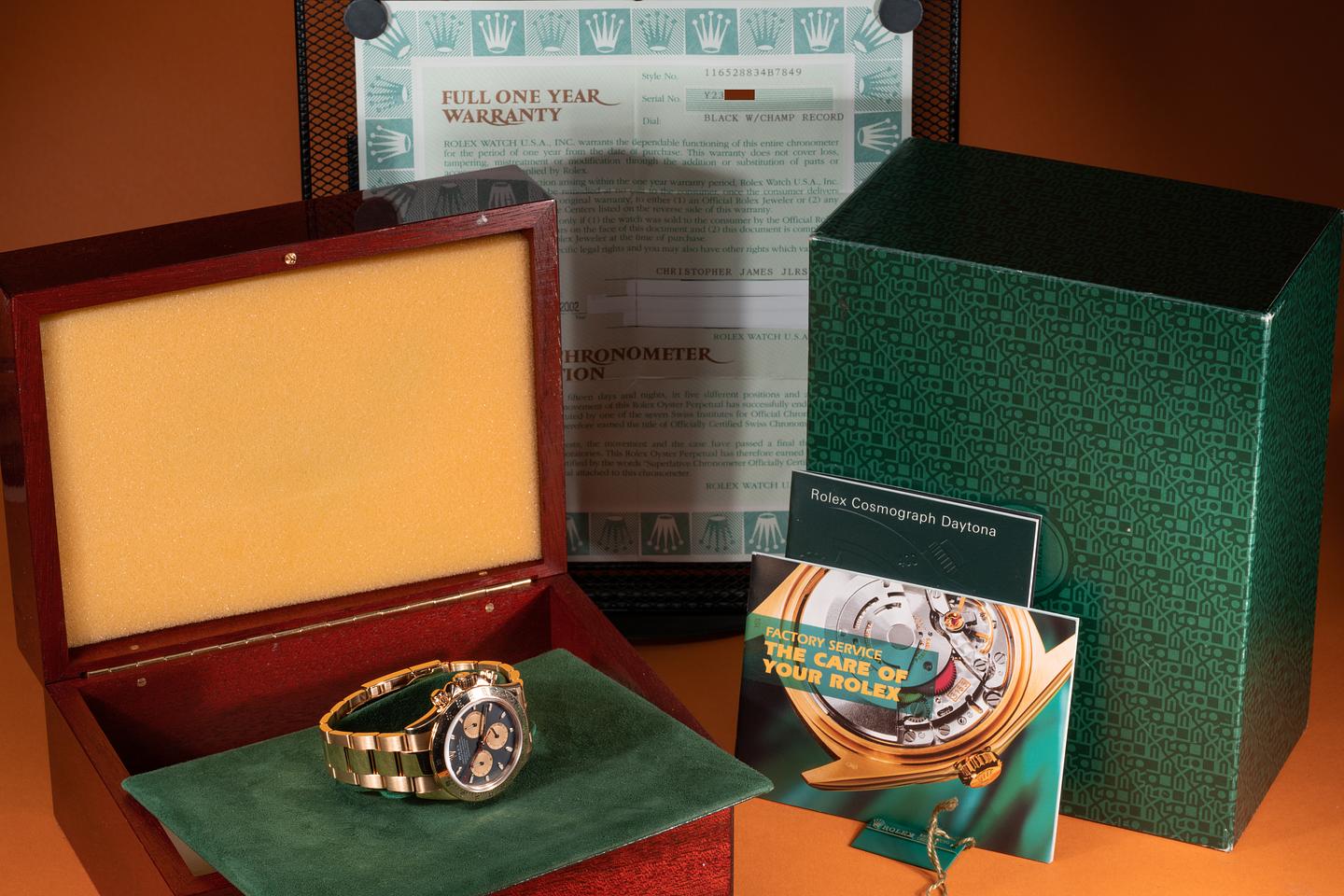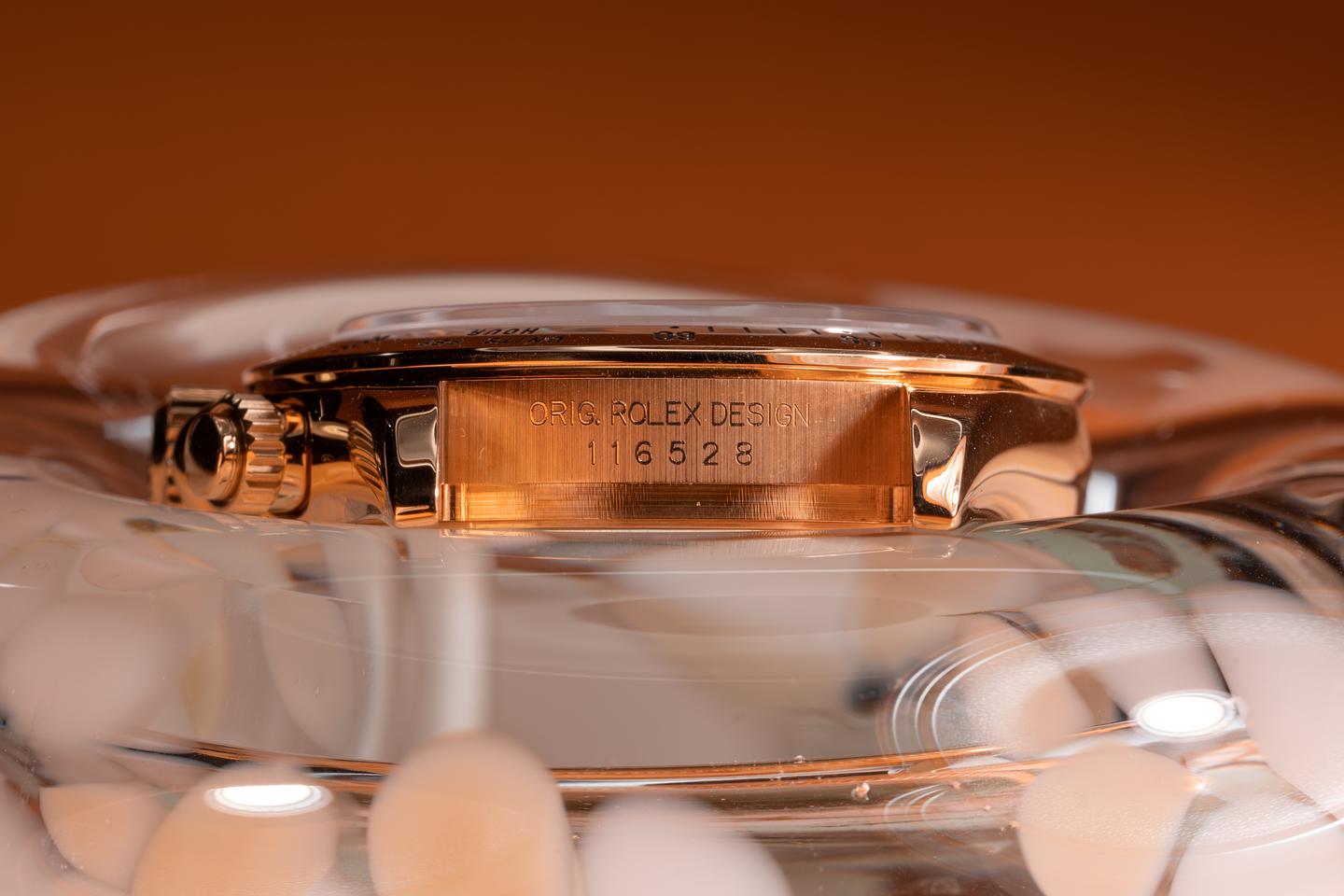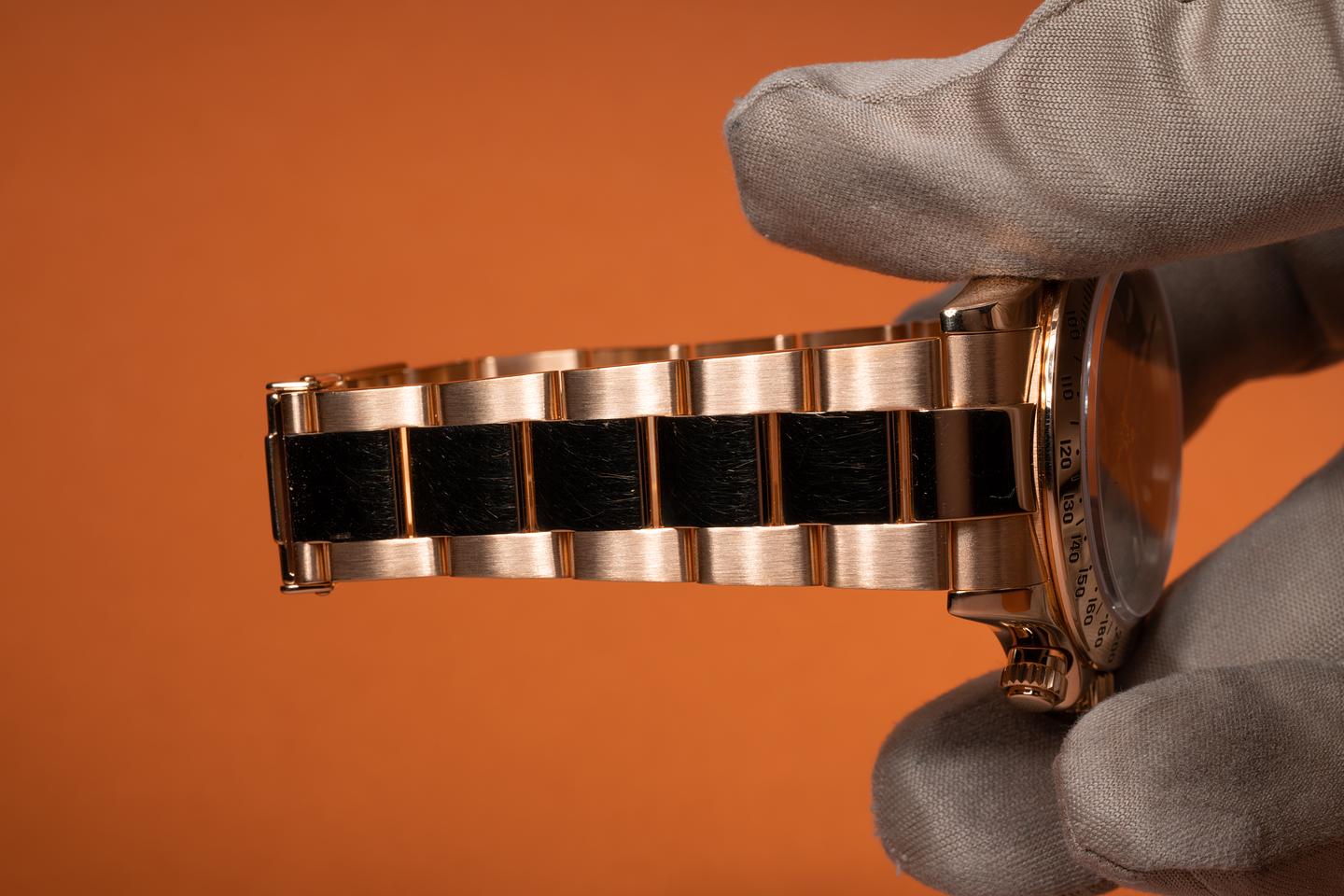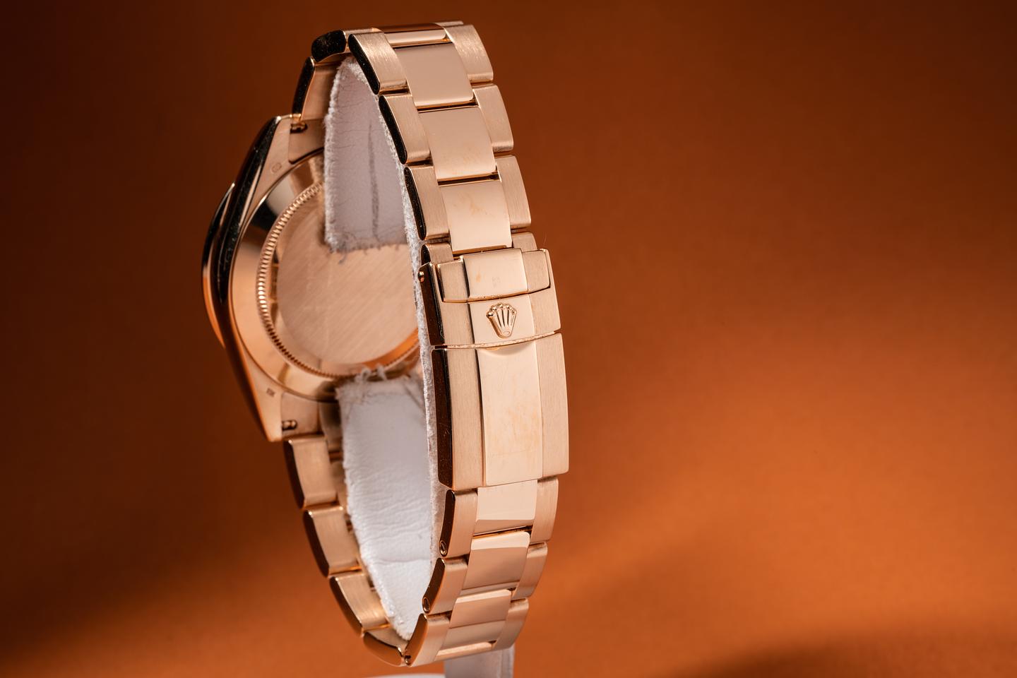 Case: The thick and even 18k yellow gold case is excellent showing only light wear from use. The 18k yellow gold bezel is also in excellent condition showing only light wear from use.