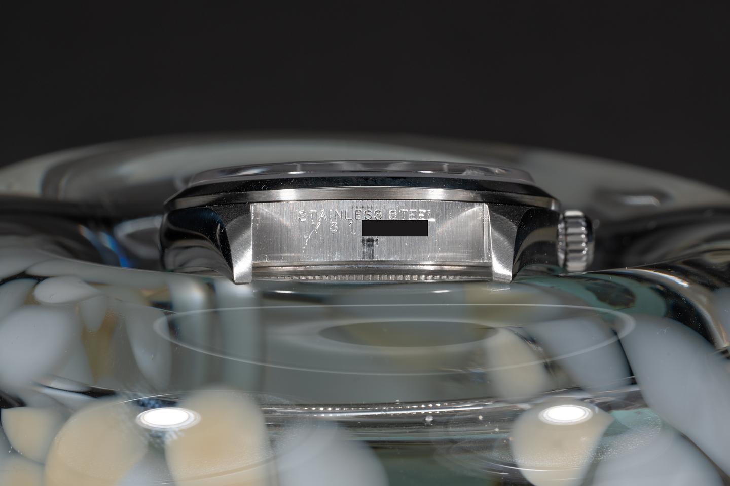 Dial: The glossy black dial is excellent showing no visible wear. The original factory hands are matching.