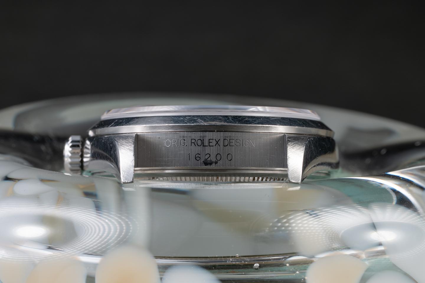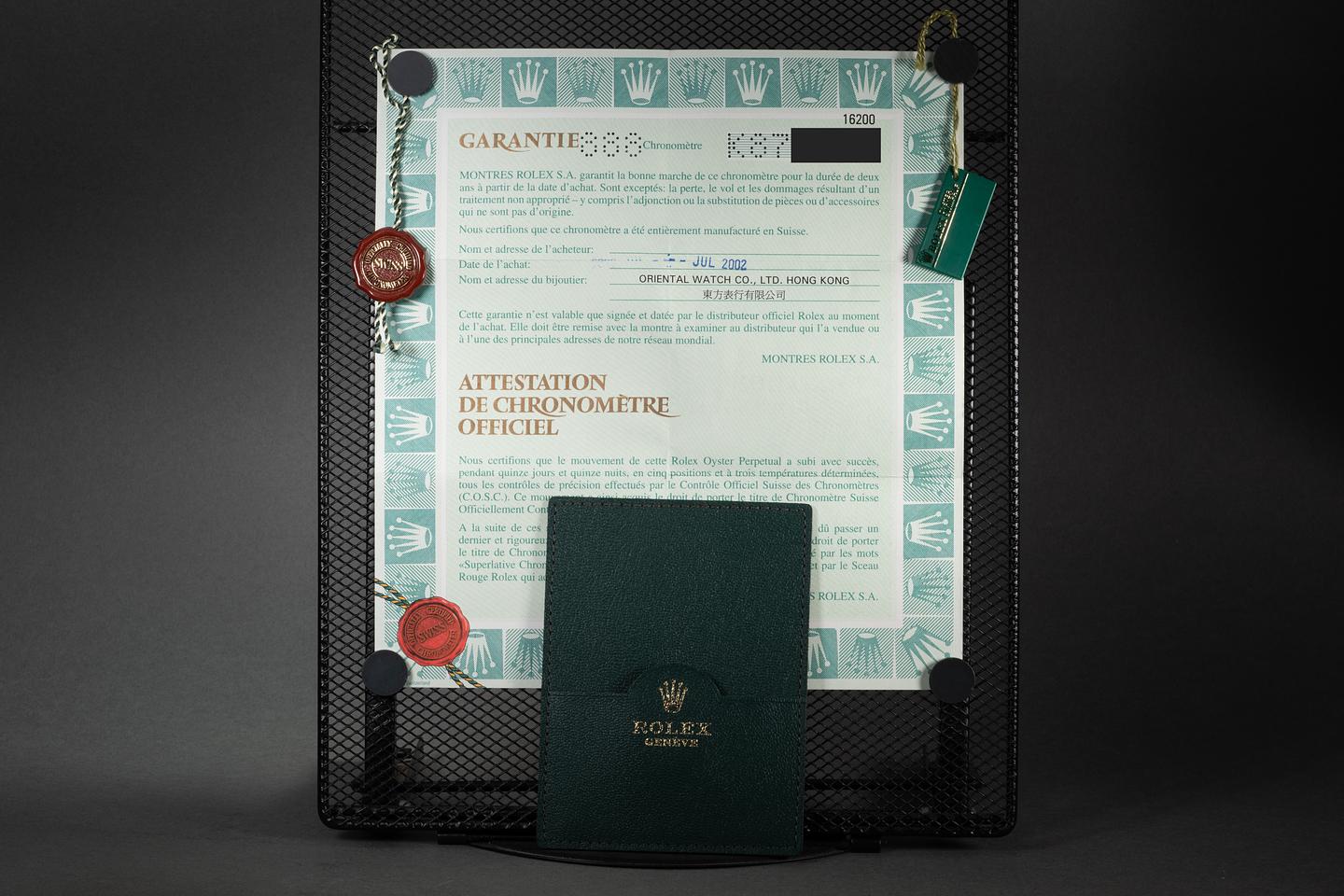 Bracelet: The 12-link Oyster bracelet is excellent, showing only extremely light stretch for its age. The clasp is stamped with a matching 2002 date code.