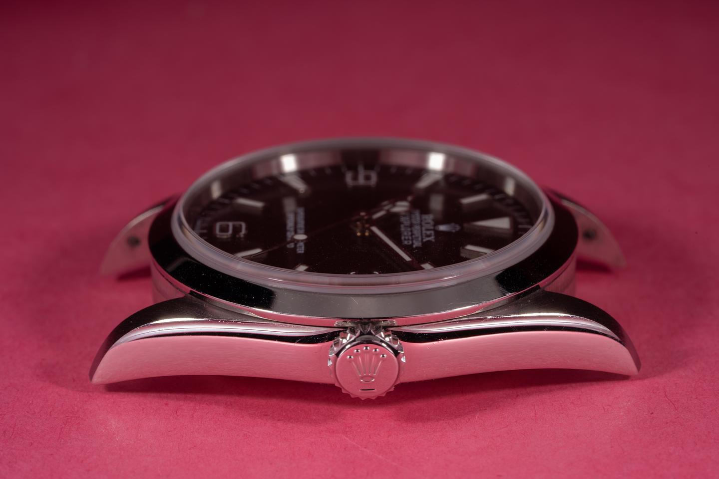 Case: The thick and even case appears to be unpolished showing only light wear from use. The smooth stainless bezel is also excellent showing only very light wear from use.