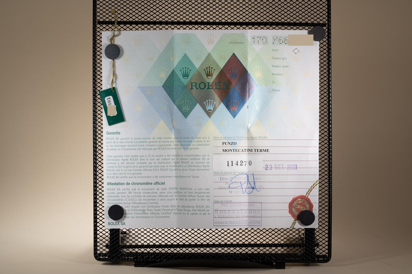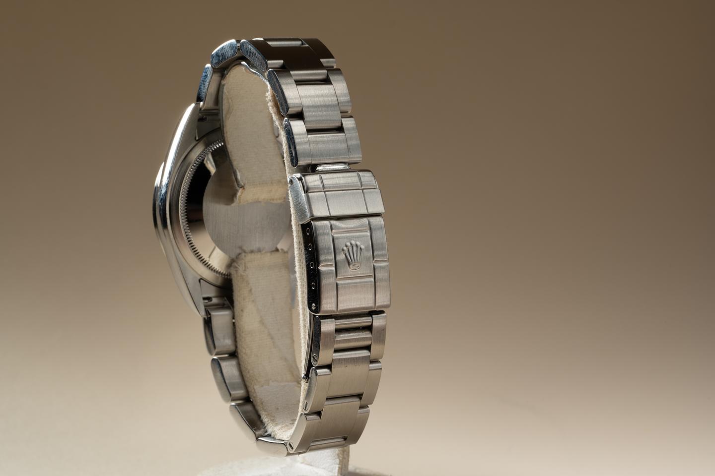 Bracelet: The 12 link Oyster bracelet is excellent showing only very light stretch for its age. The clasp is stamped with a matching 2002 date code.
