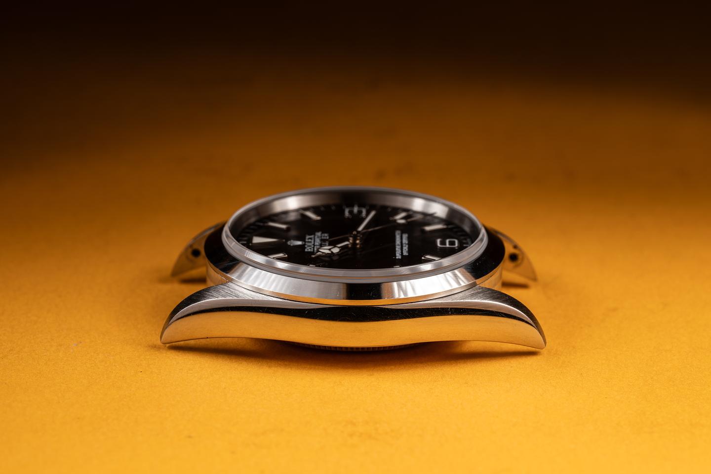 Case: The thick, sharp, and even 36mm case is excellent, showing only very light wear from use. The smooth stainless bezel is also in excellent condition, showing only very light wear from use.