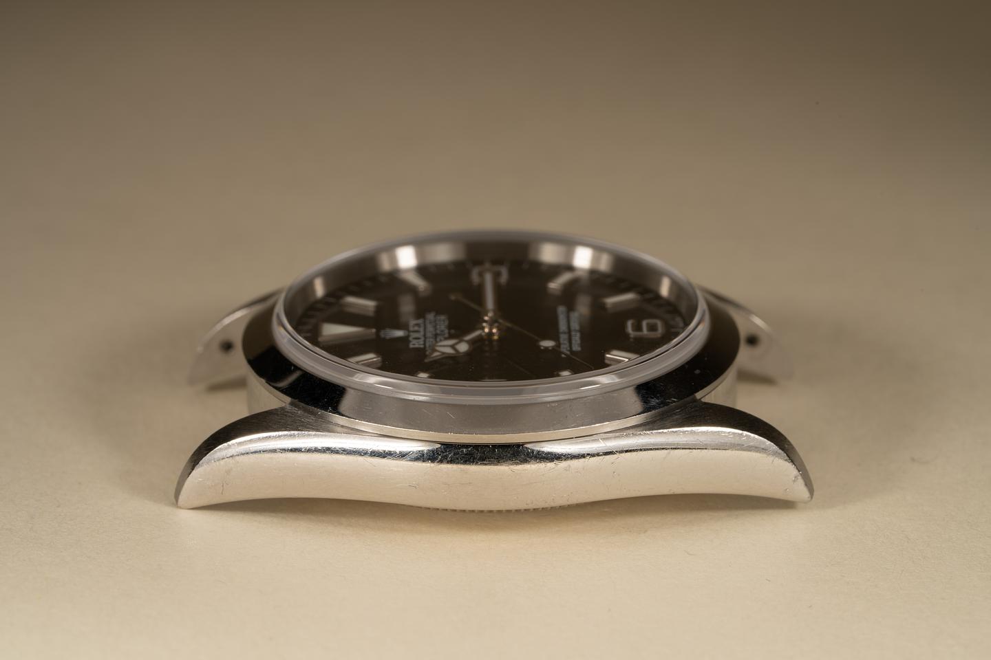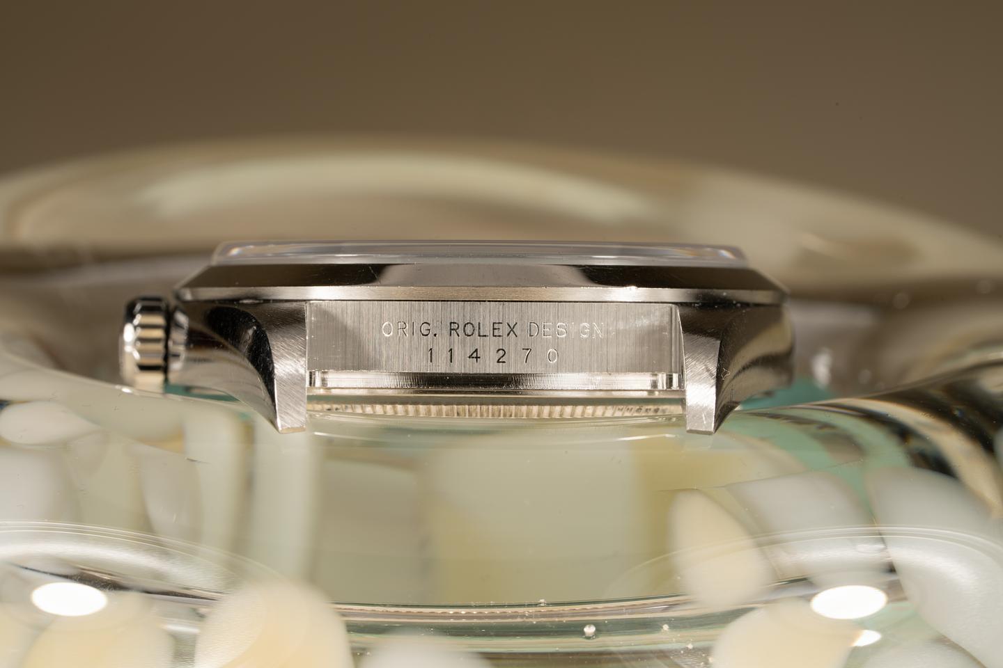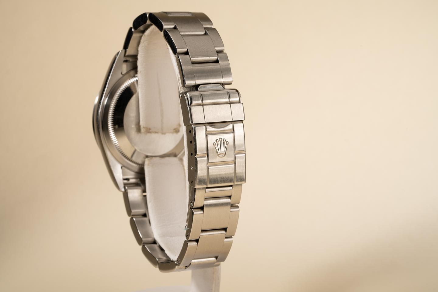 Bracelet: Excellent 11 link oyster bracelet showing only light stretch for its age. The clasp is stamped with a 2003 date code.