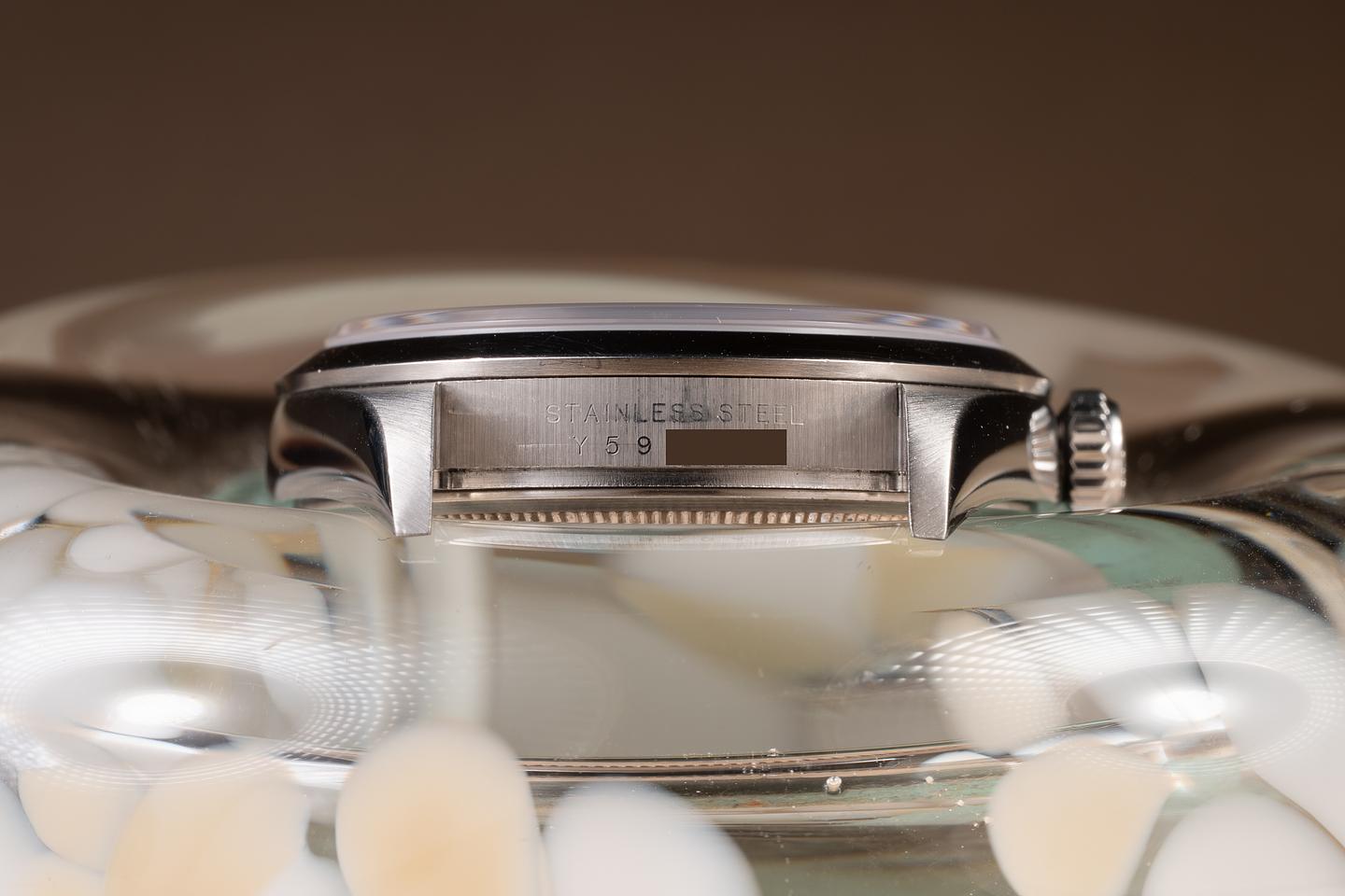 Dial: The glossy black 3, 6, 9 dial is excellent, showing no visible wear. The original factory hands are matching.