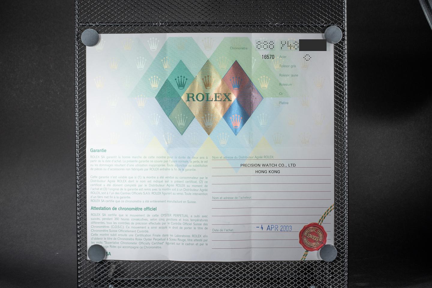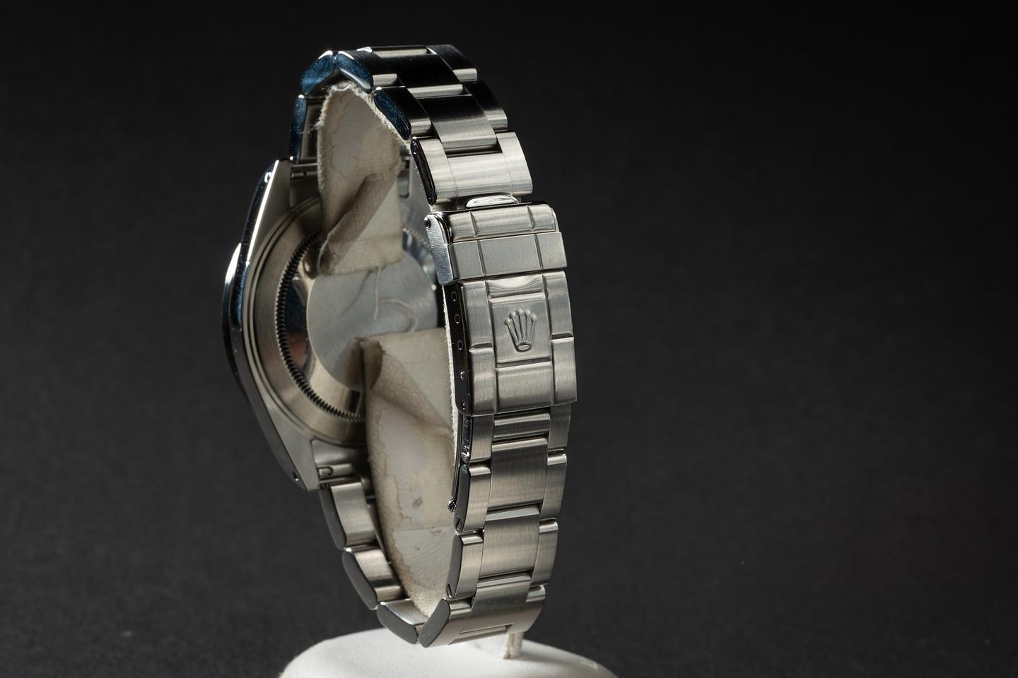 Bracelet: The 12 link Oyster bracelet is excellent showing only very light stretch for its age. The clasp is stamped with a matching 2002 date code.