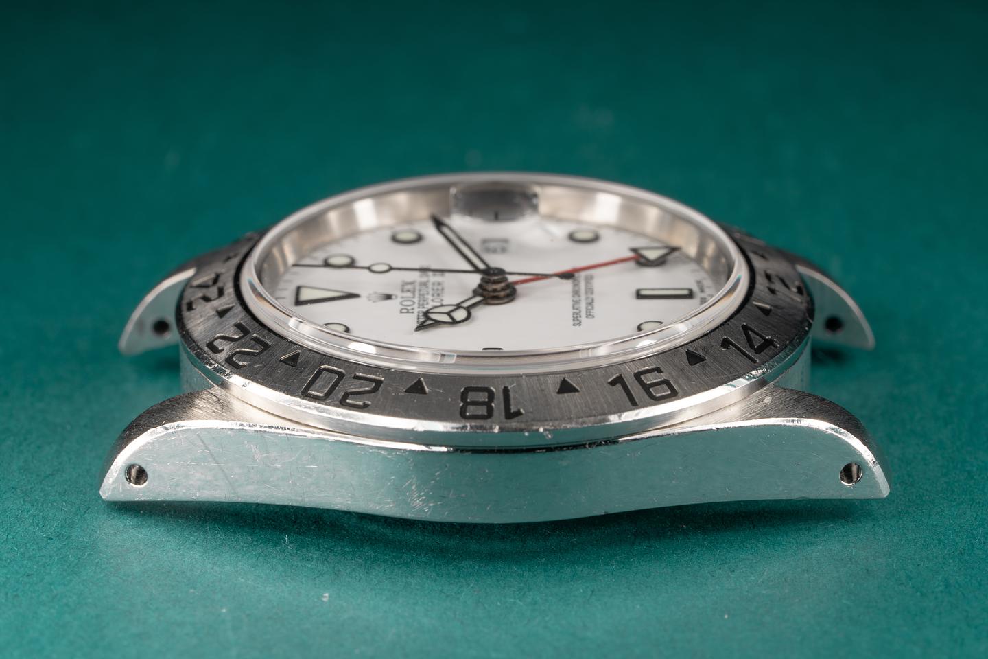 Case: The thick and even case is excellent with sharp intact factory bevels. The case shows some wear from use. The stainless bezel is also unpolished with the factory sunburst pattern still visible. The bezel also shows some wear from use.