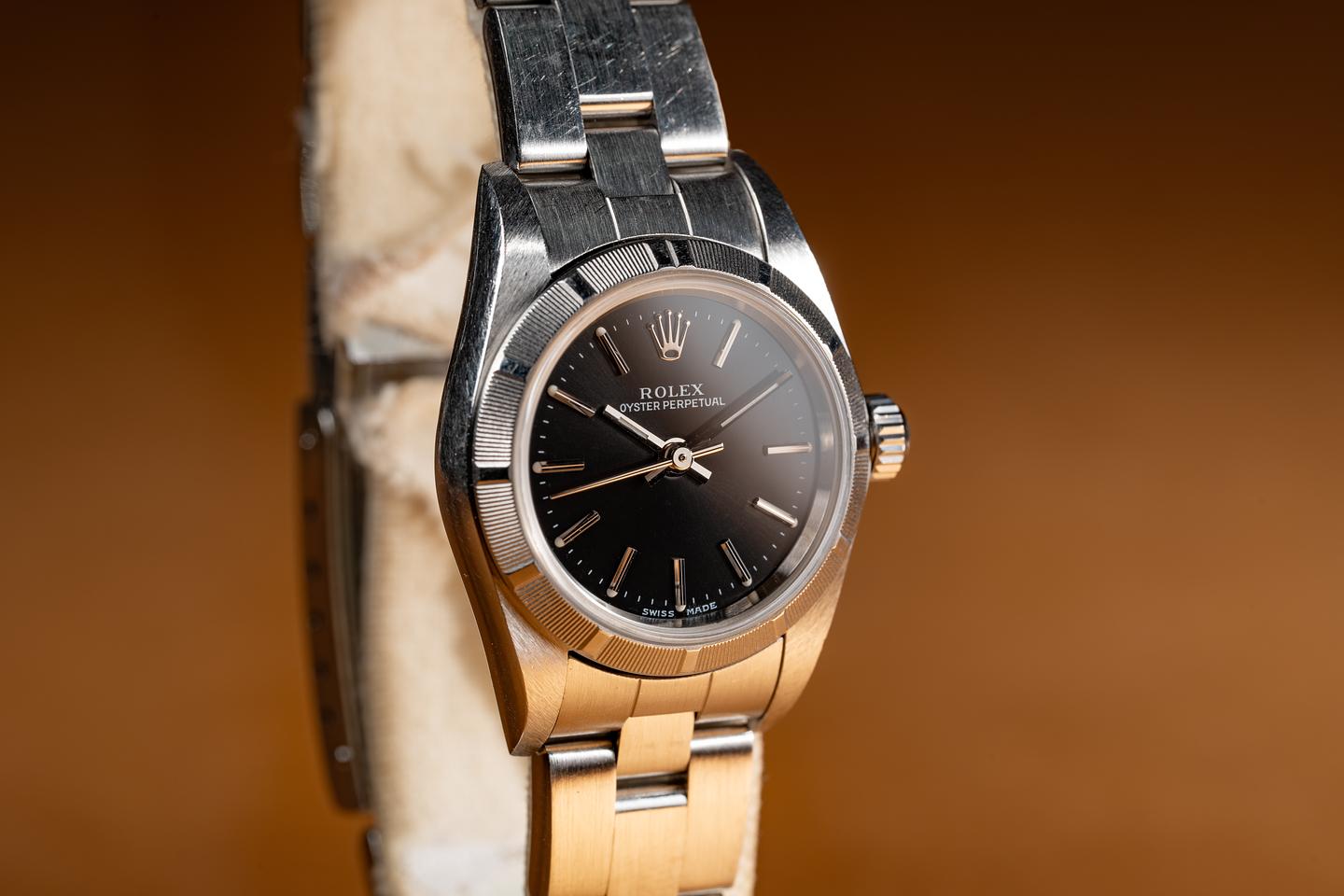 Bracelet: The 12 link Oyster bracelet is excellent showing only very light stretch for its age. The clasp is stamped with a matching 2002 date code.