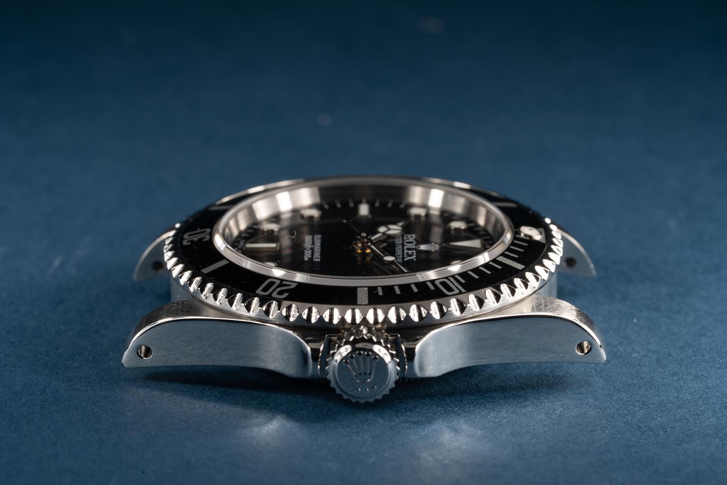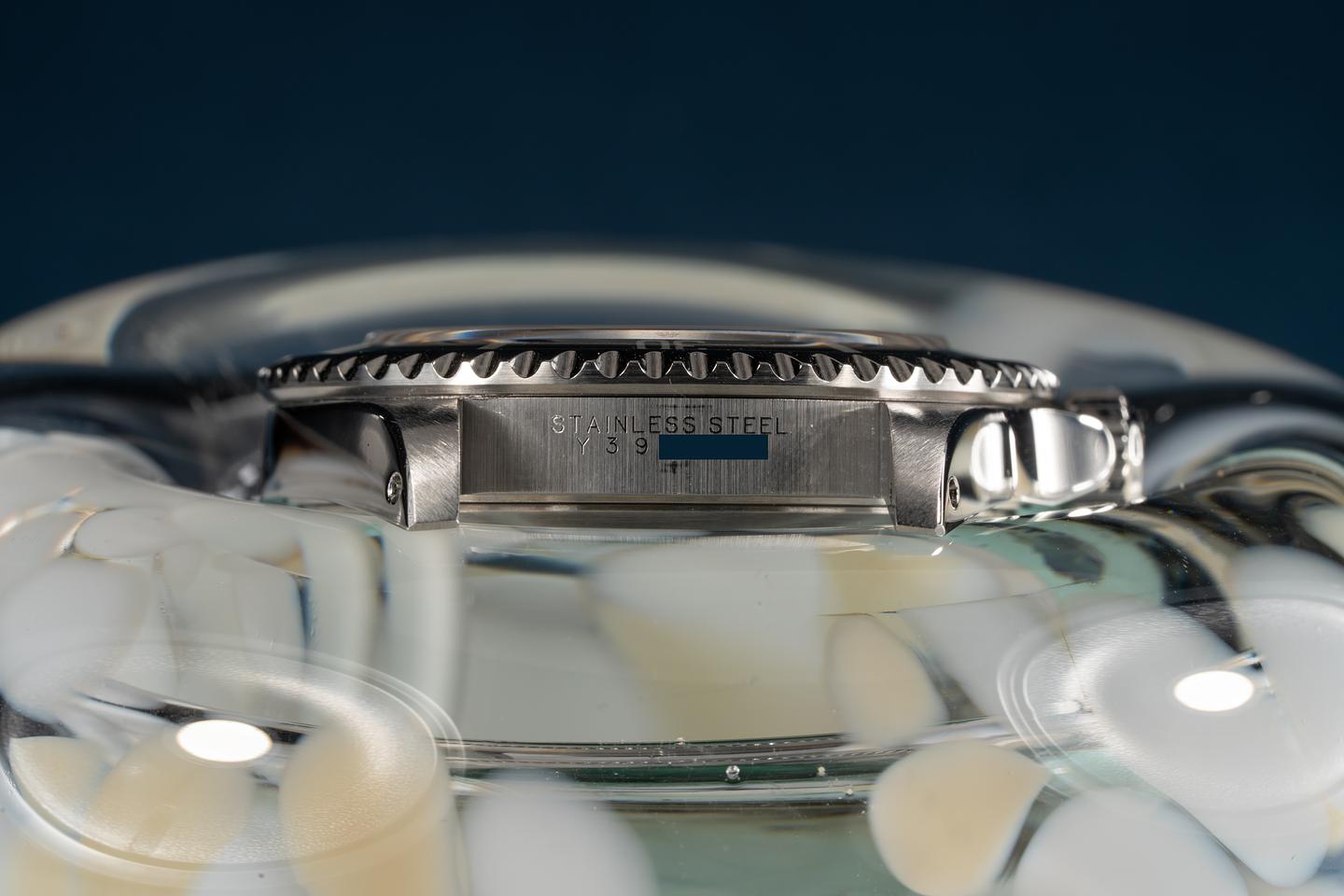 Case: The recently polished case is excellent showing prominent bevels and only very light wear from use. The black bezel insert is also in excellent condition showing some light wear from use.