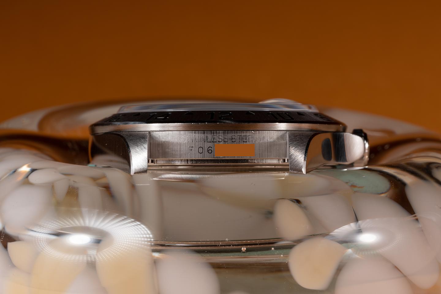 Case: The excellent no holes case has just returned from polishing showing sharp prominent bevels. The stainless bezel is also in excellent condition showing a sharp well defined sunburst finish.