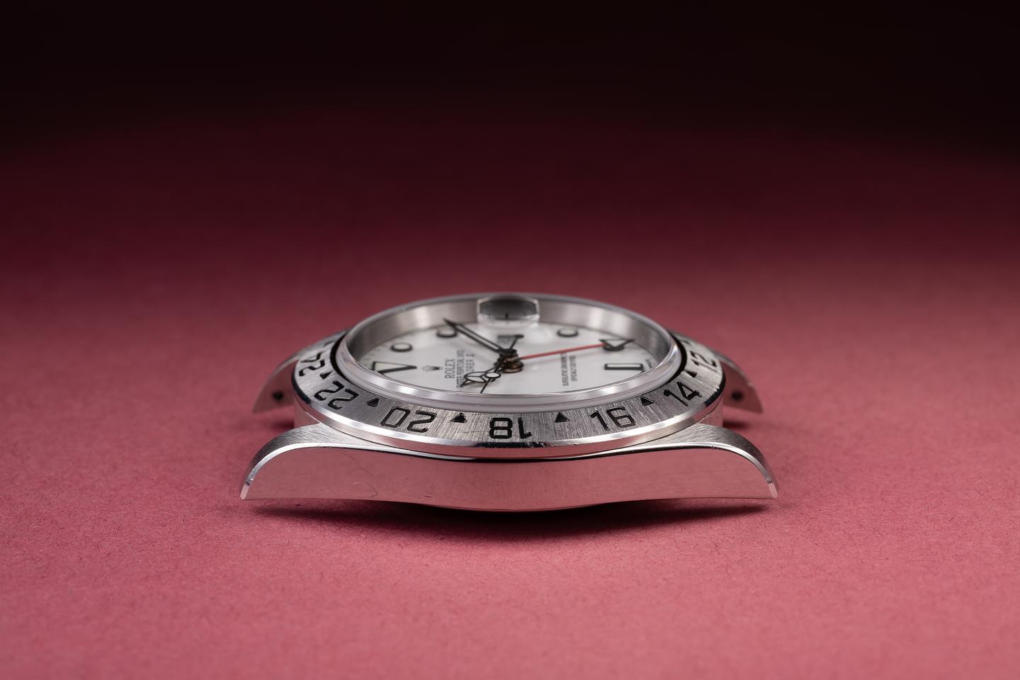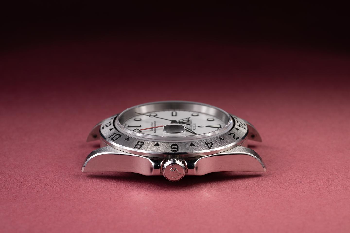 Dial: The white "Polar" dial is excellent, showing no visible wear. The original factory hands are matching.