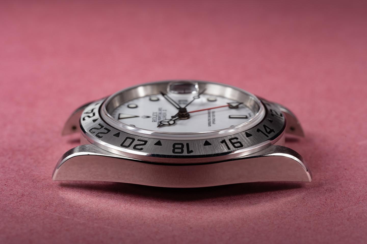 Case: The unpolished no holes case is excellent showing sharp prominent bevels and only light wear from use. The unpolished stainless bezel is also in excellent condition showing a sharp well defined sunburst finish and only light wear from use.