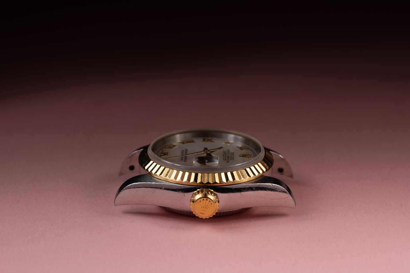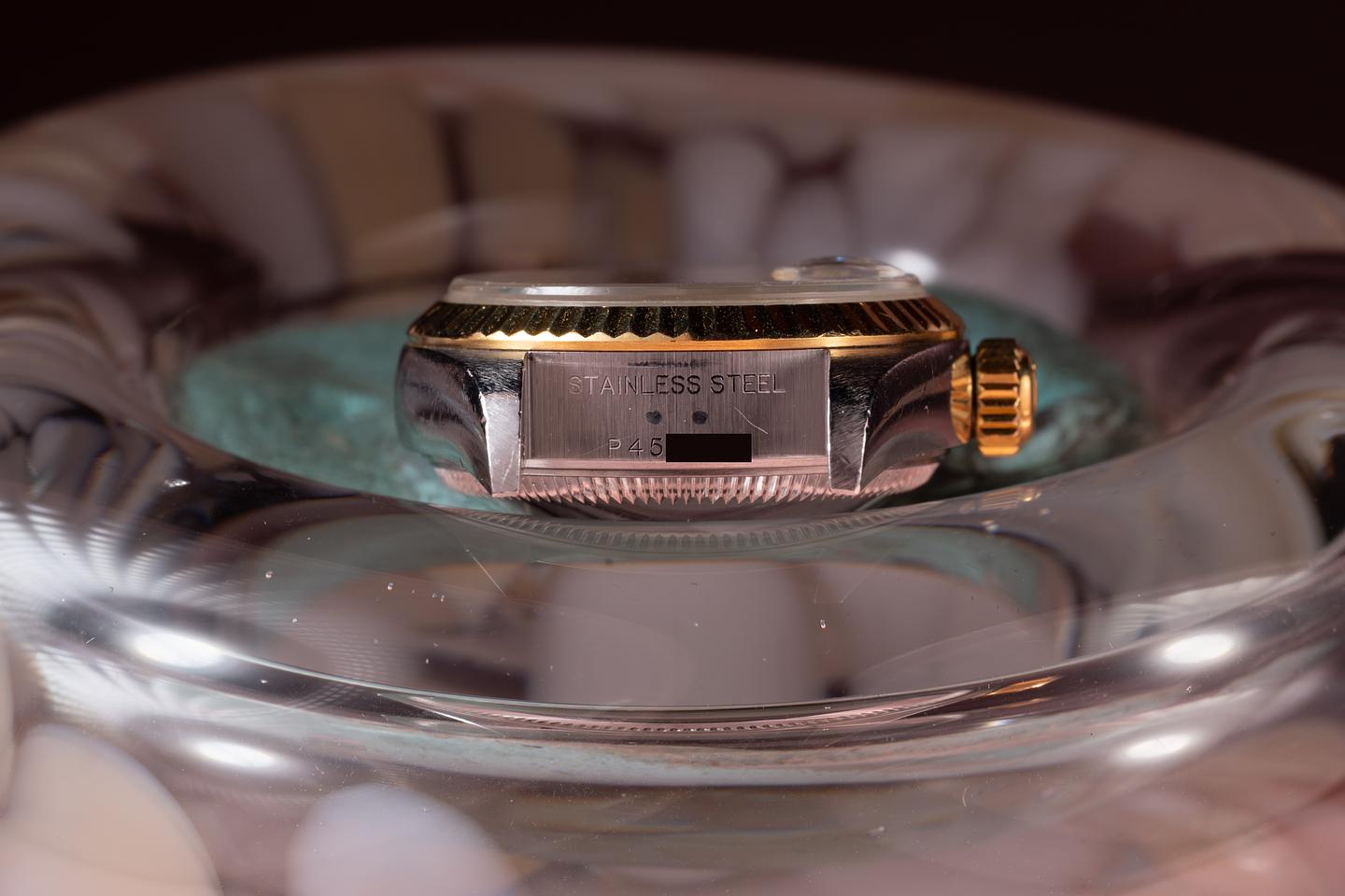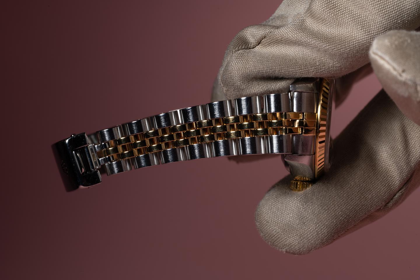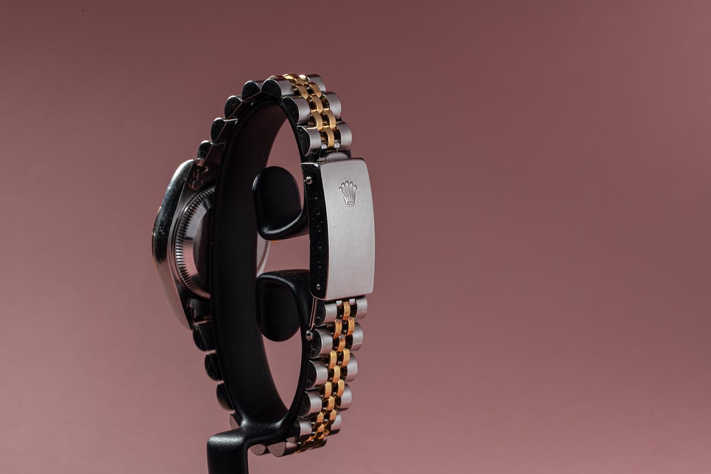 Bracelet: The 18 link two-tone ladies jubilee bracelet is excellent showing only very light stretch for it age. The clasp is stamped with a 2000 date code. The bracelet will fit up to a 15.3cm. / 6.02" wrist.