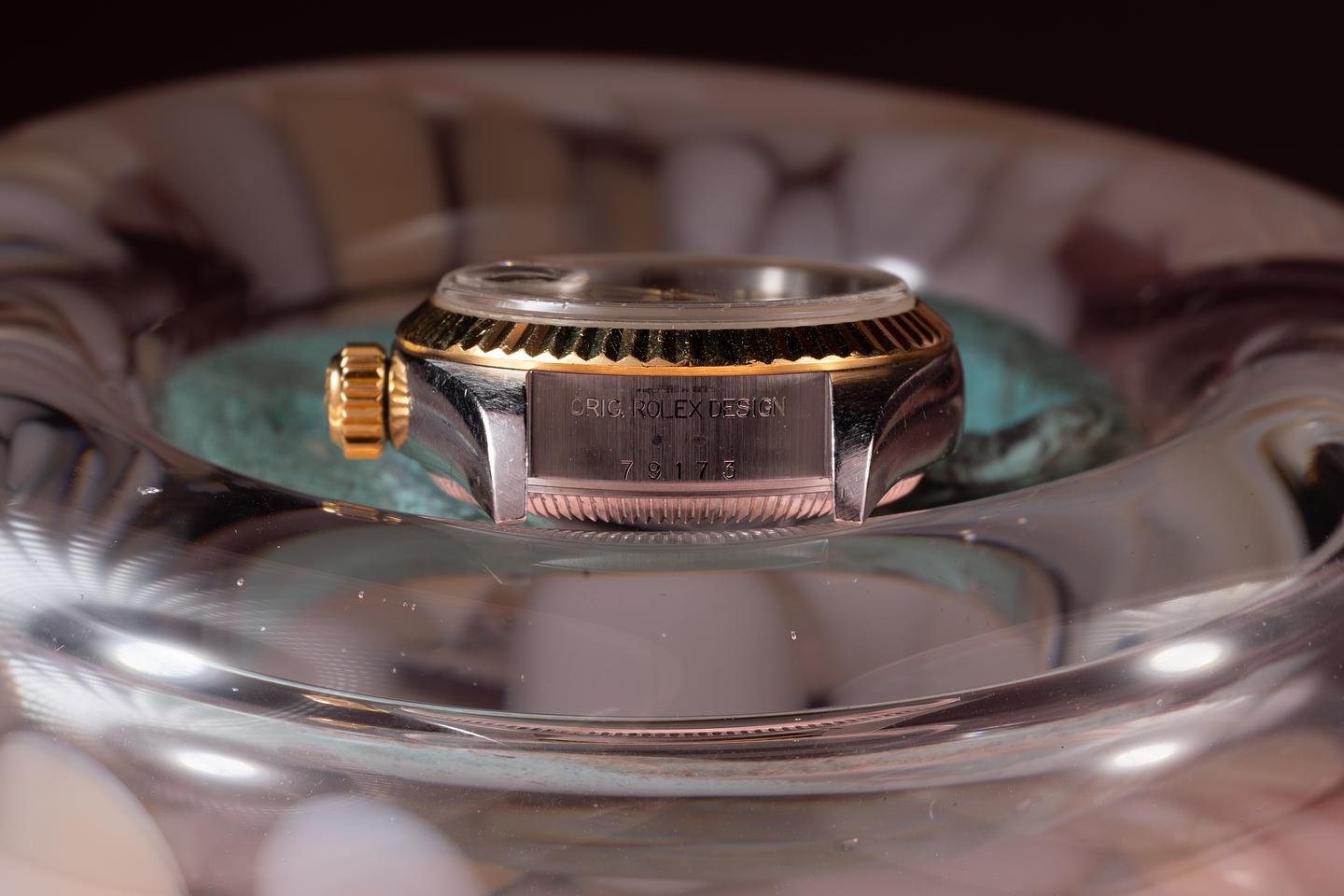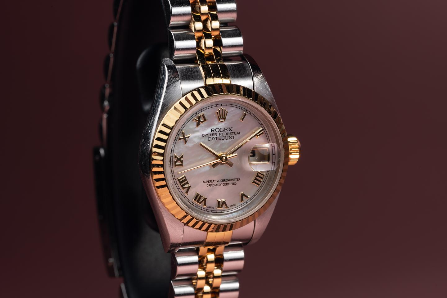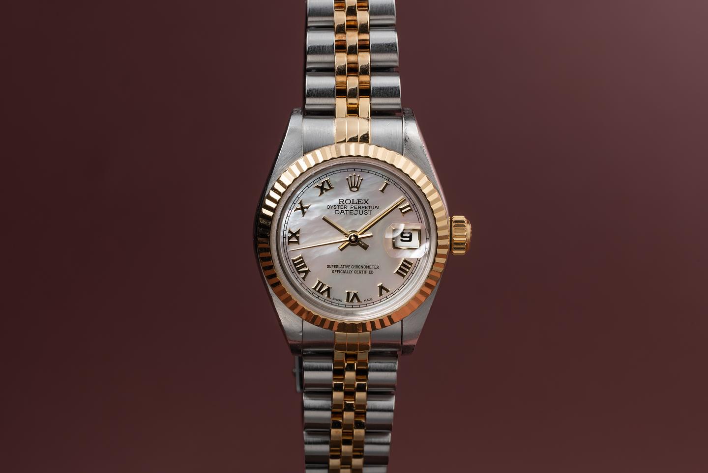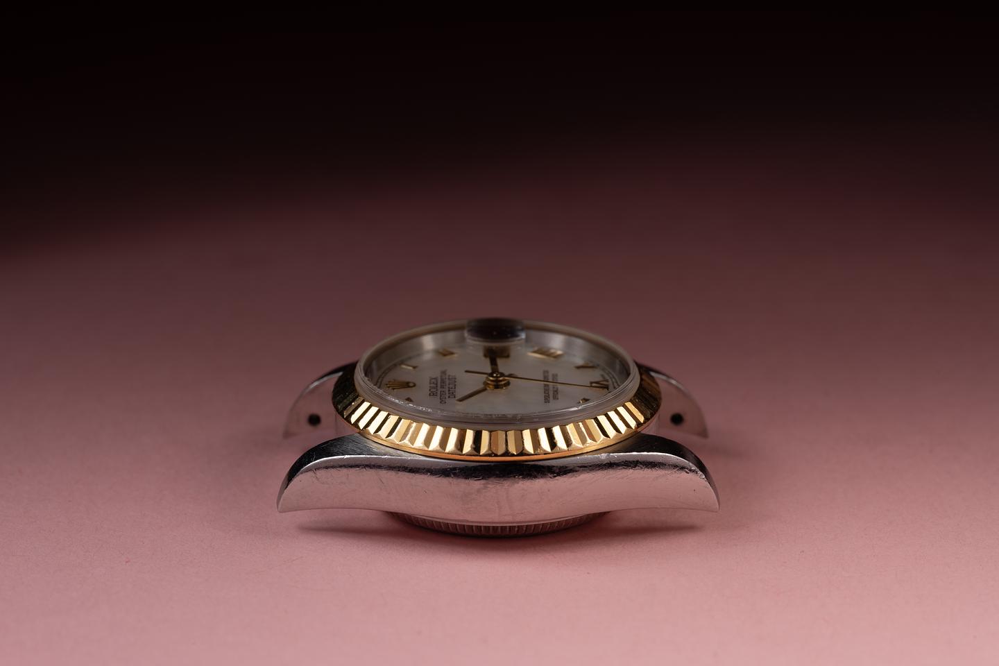 Bracelet: The 18 link two-tone ladies jubilee bracelet is excellent showing only very light stretch for it age. The clasp is stamped with a 2000 date code. The bracelet will fit up to a 15.3cm. / 6.02" wrist.