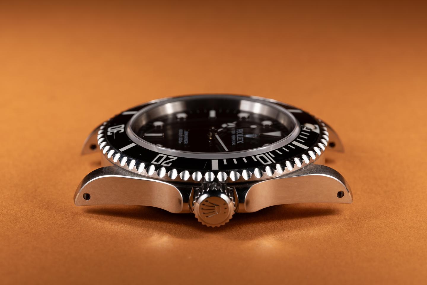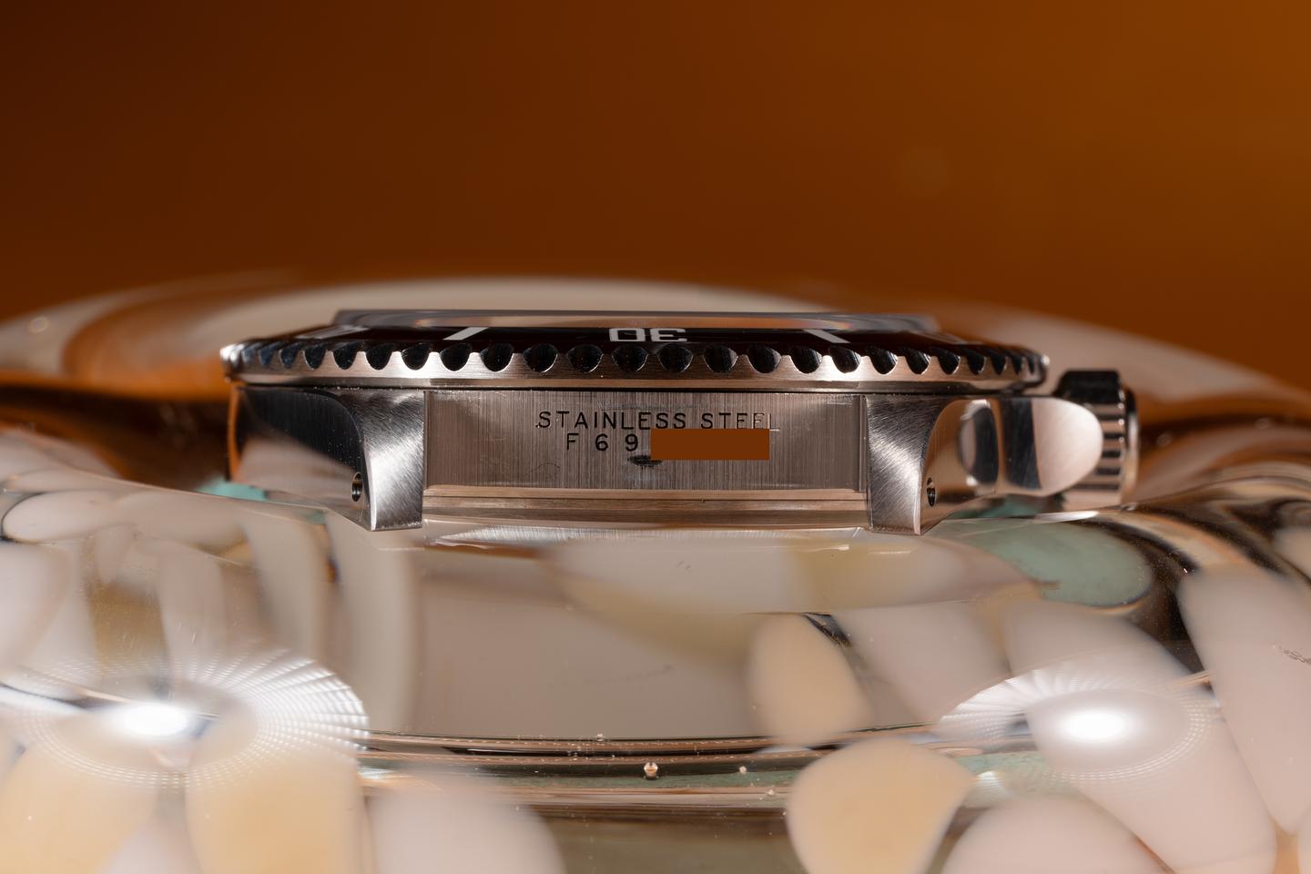 Case: The recently polished case is excellent showing sharp prominent bevels and only light wear from use. The black bezel insert is also in excellent condition showing only light wear from use.