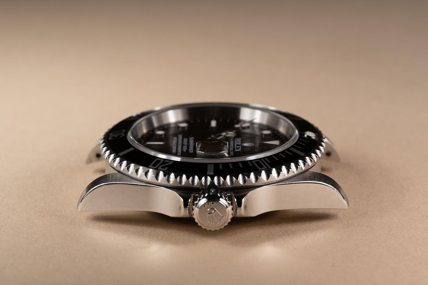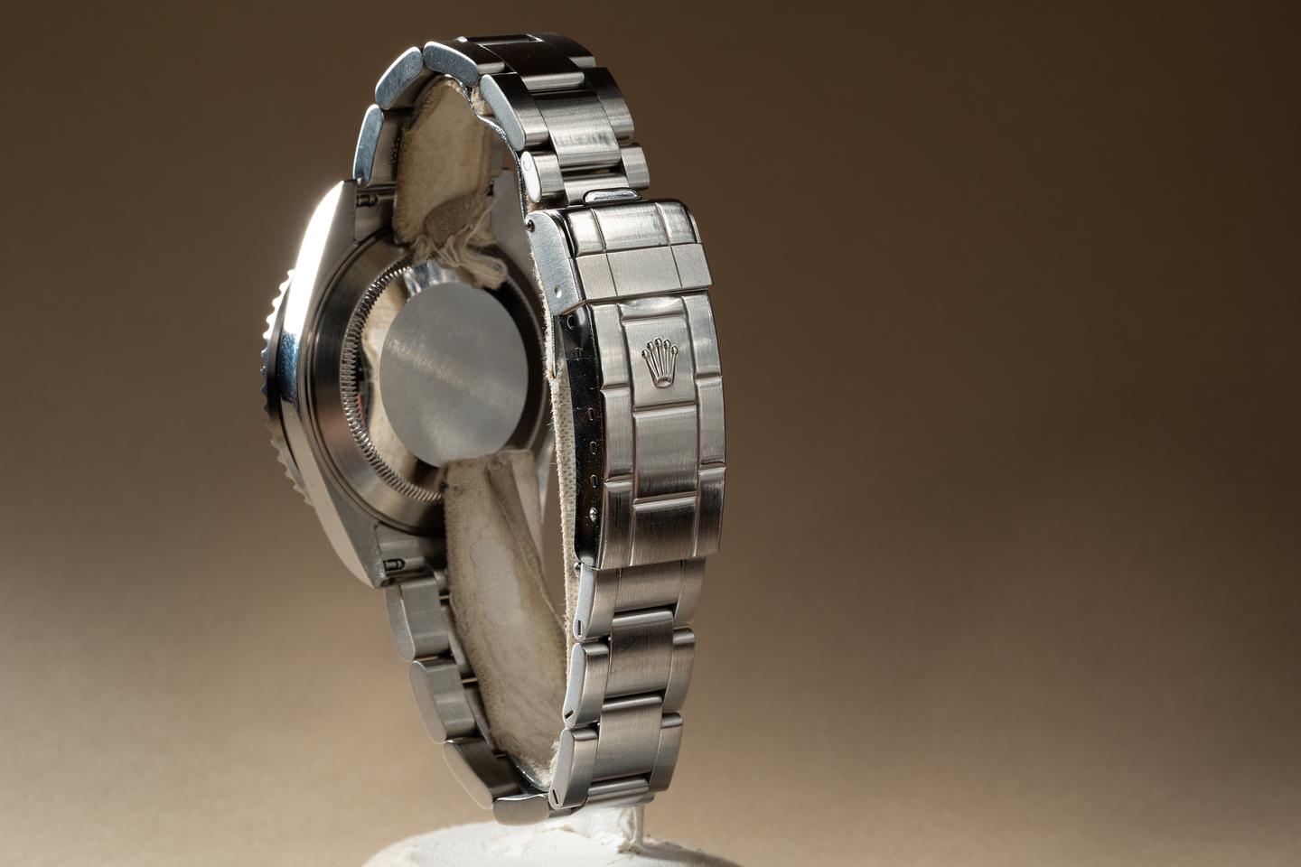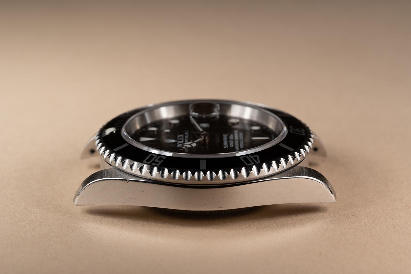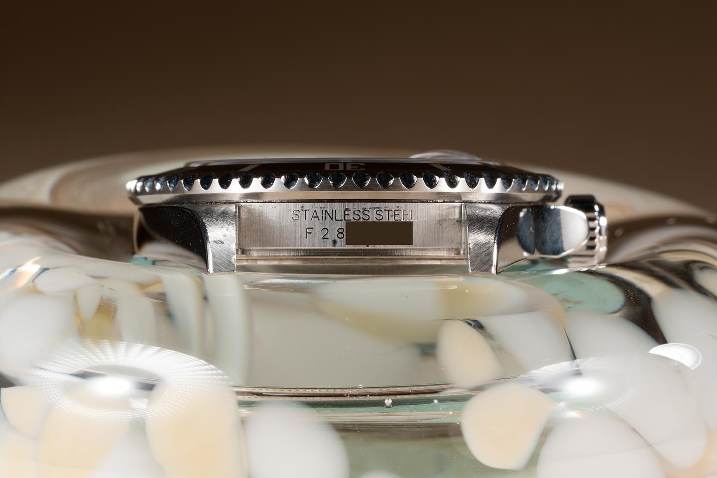 Case: The no holes case is excellent showing prominent bevels and some light wear from use. The black bezel insert is also in excellent condition showing only very light wear.