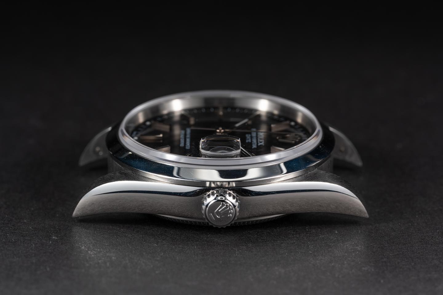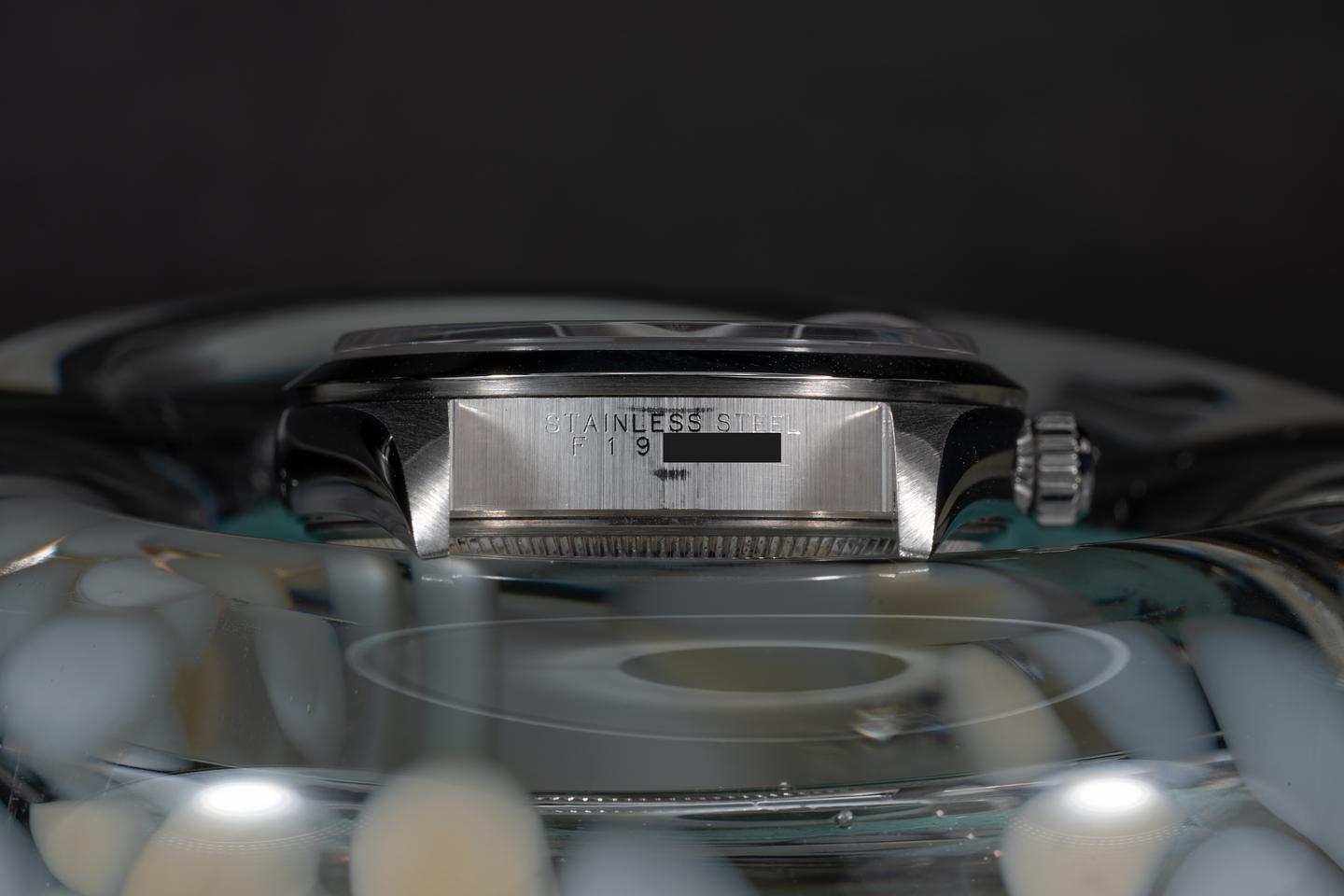 Case: The sharp 34mm case is excellent showing only light wear from use. The smooth stainess bezel is also in excellent condition showing only very light wear from use.