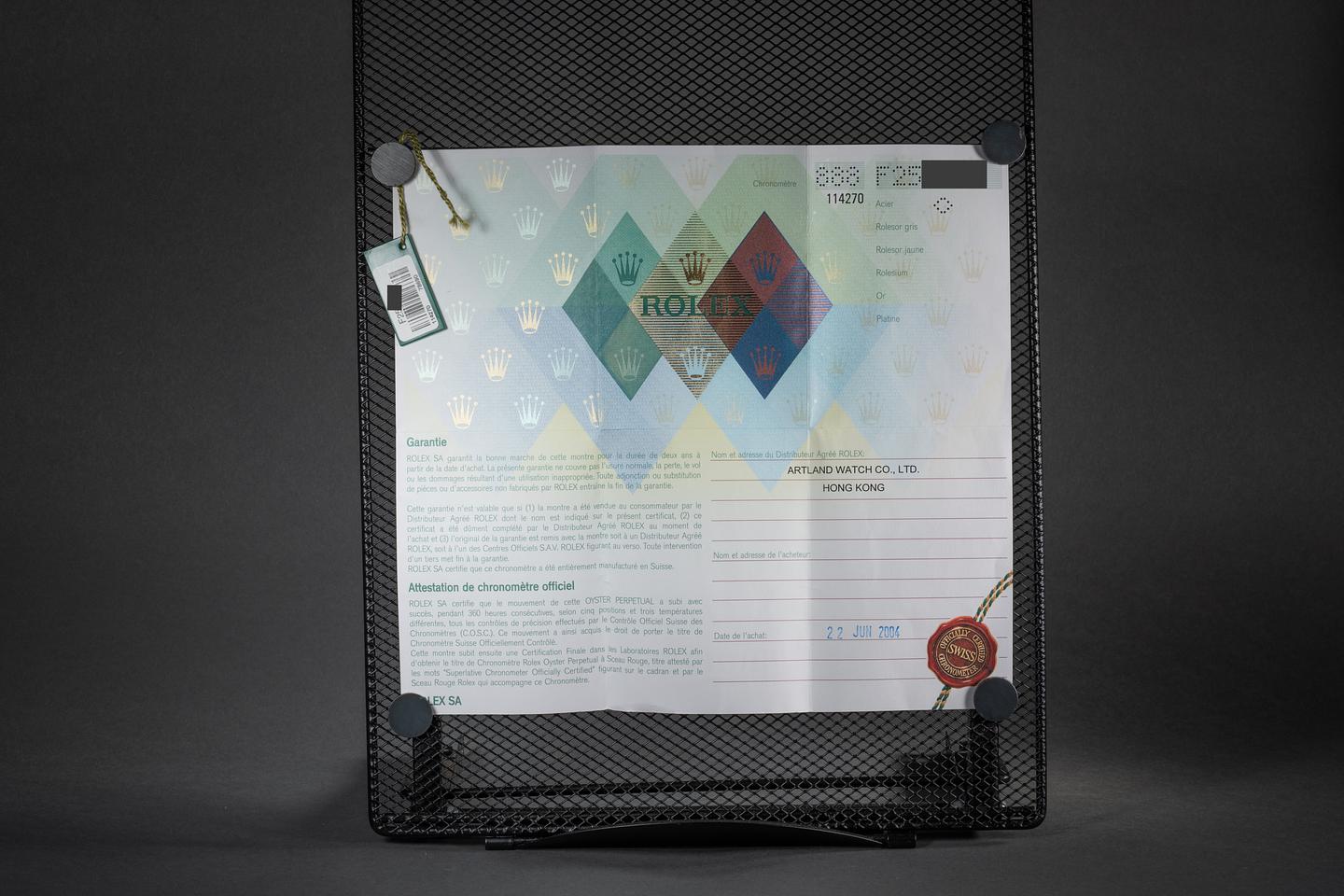Bracelet: The 12 link Oyster bracelet is excellent showing only light stretch for its age. The clasp is stamped with a matching 2004 date code.