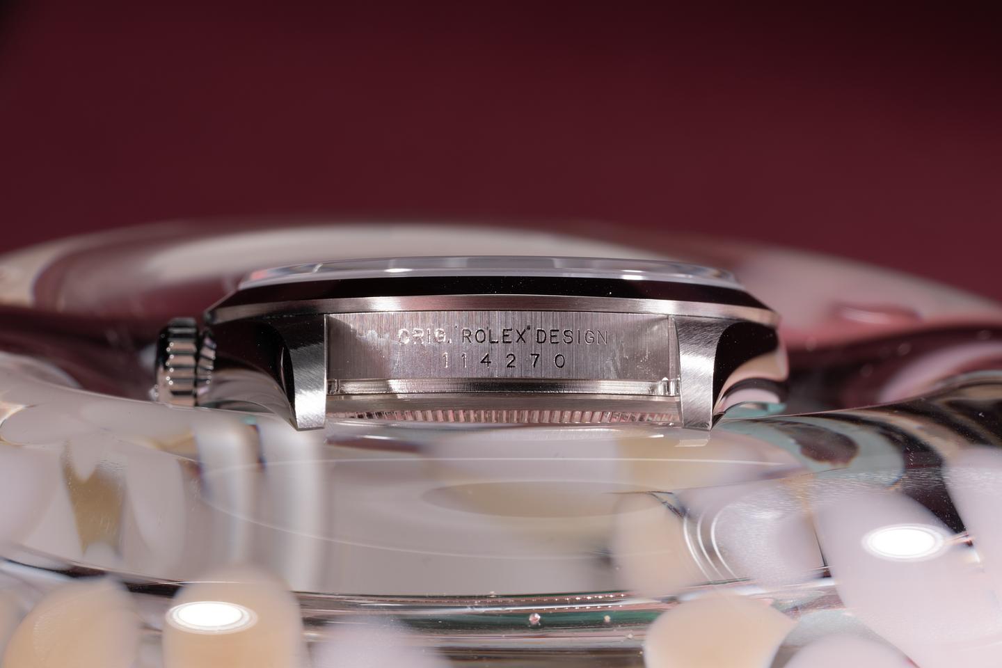 Bracelet: The 12 link Oyster bracelet is excellent showing only very light stretch for its age. The clasp is stamped with a 2003 date code.
