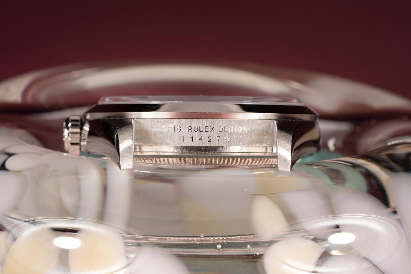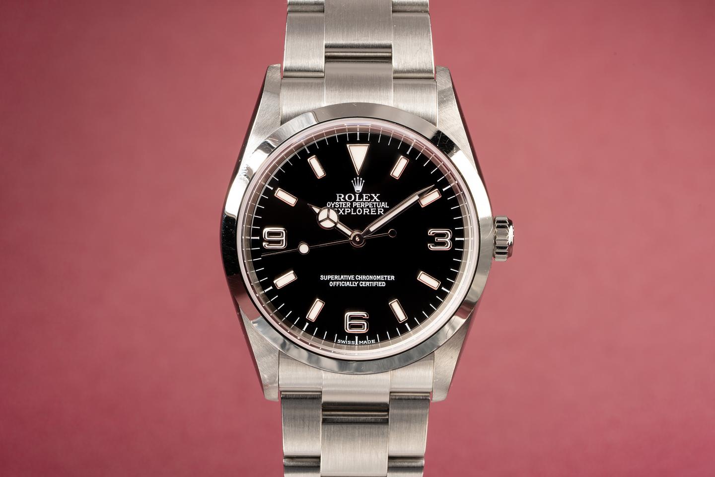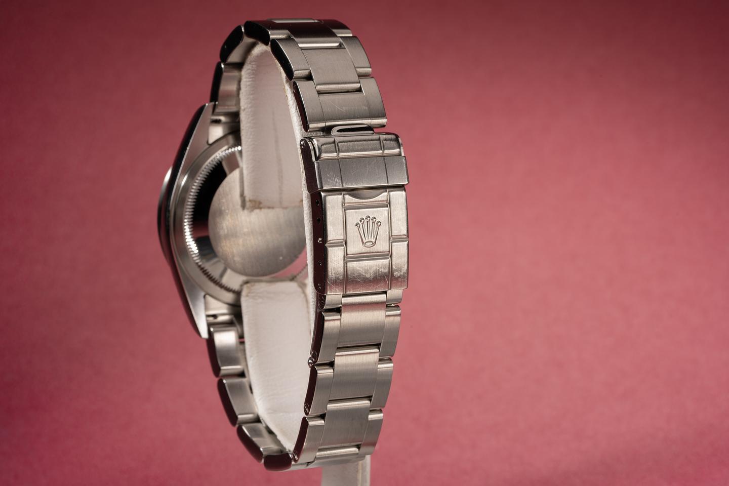 Bracelet: Excellent 13 link oyster bracelet with very light stretch for its age. The clasp is stamped with a matching 2004 date code.