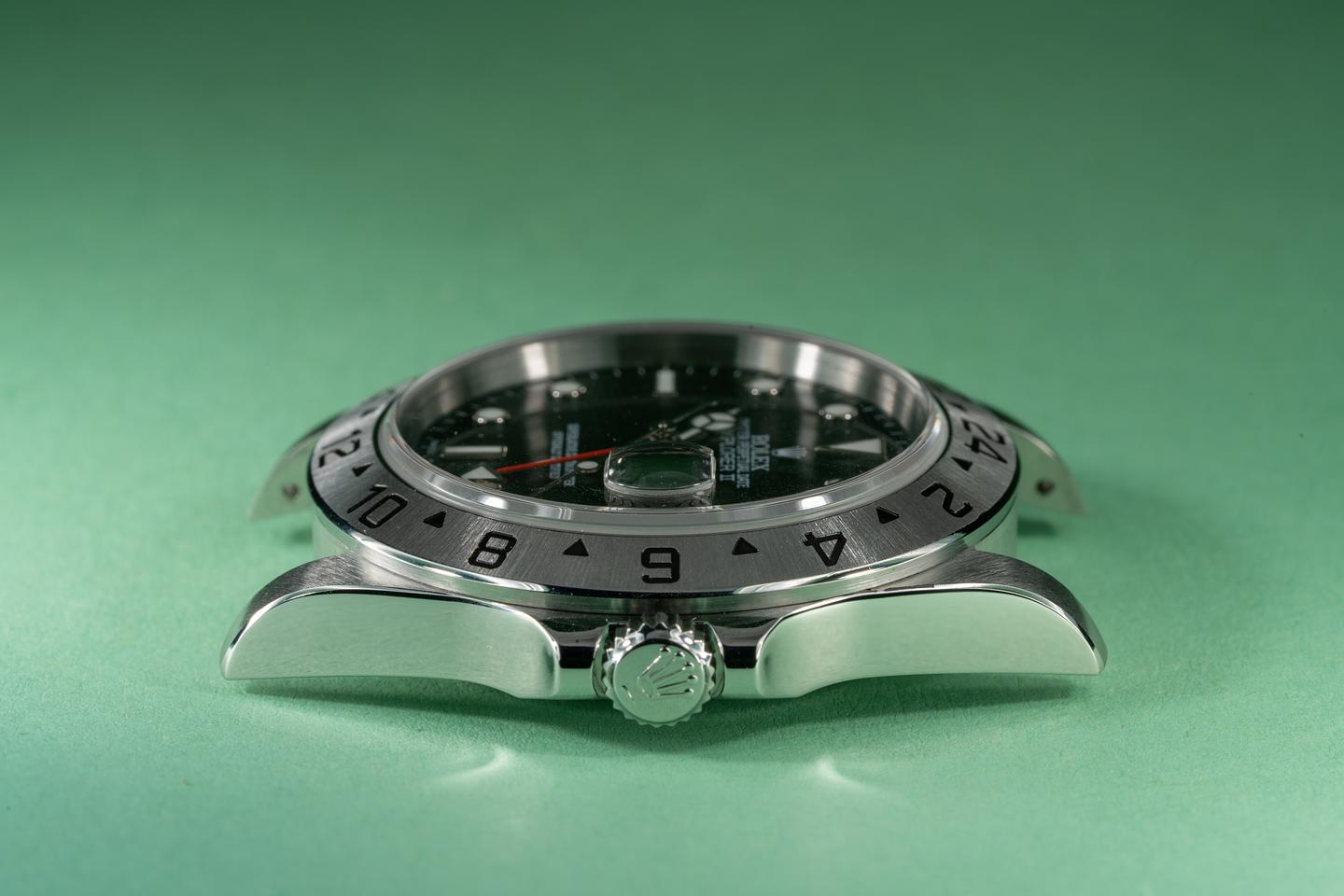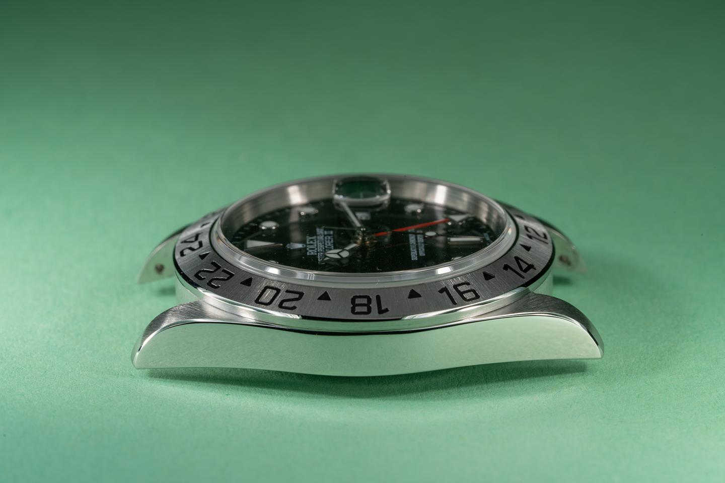 Case: The case has just returned from polishing showing sharp bevels. The stainless bezel is also in excellent showing a sharp and well defined sunburst finish.